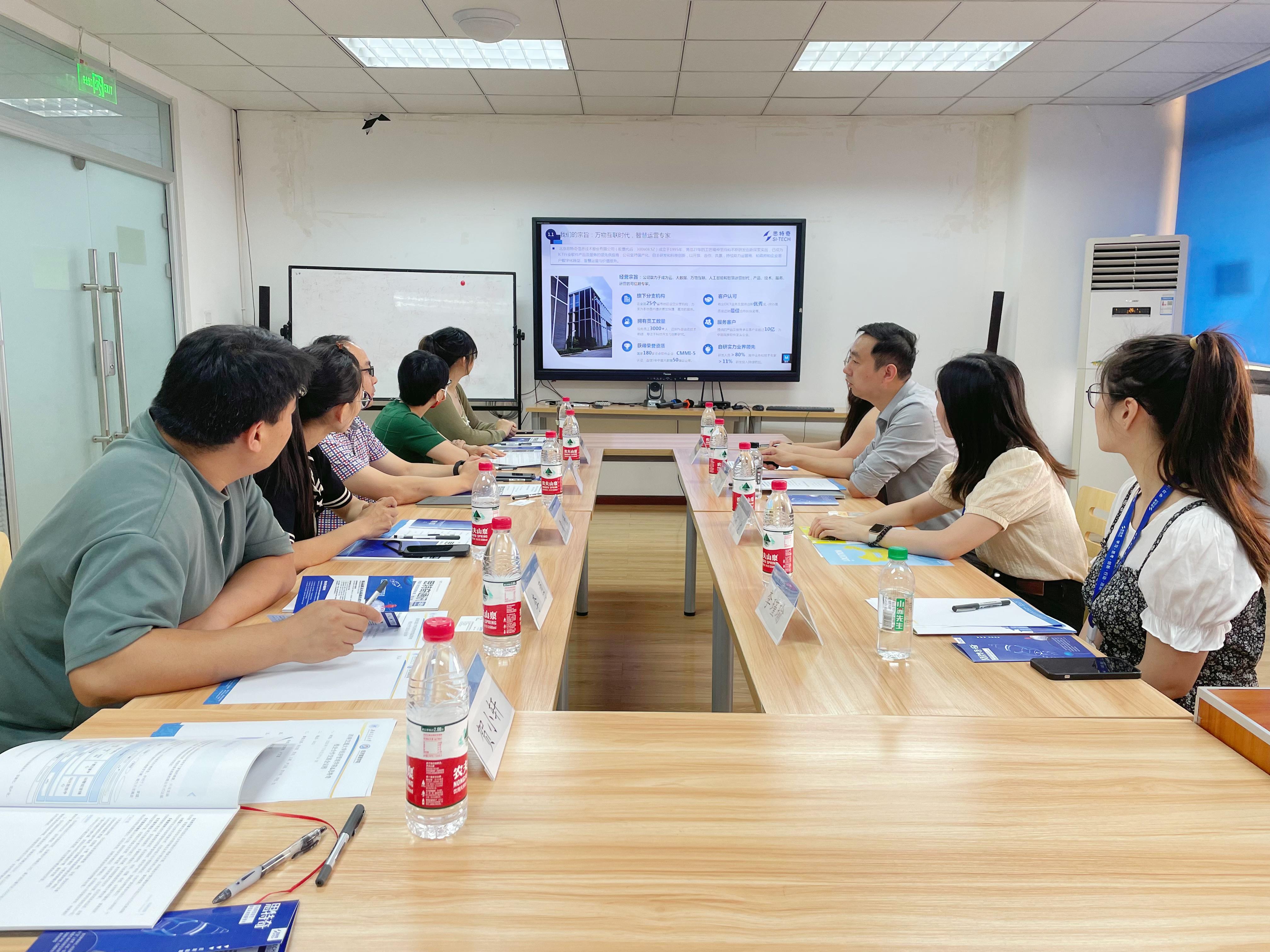 为扎实推进beats365“访企拓岗促就业”专项活动,有效搭建校企交流对接平台,促进校企资源、信息双赢共享,2023年7月6日上午9:30,beats365员工工作组与北京思特奇信息技术股份有限公司(以下简称思特奇)在九里校区信息楼0411会议室举行“访企拓岗”校企合作交流会。思特奇行业总监伍鑫、西南区校企合作负责人史晓楠、产品经理杨建(2021届交大员工)、西南区HRBP卢芷萱,beats365党委副书记杨宏毅、团委书记贾佳、学工组副组长王哿、辅导员尹玉萌和贺小轩出席了本次交流会。会议由杨宏毅主持。