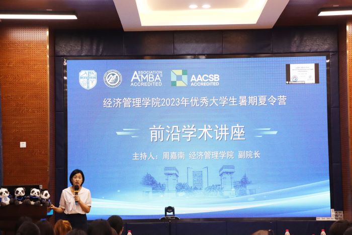 杨平教授带来了题为“Earnings Pressure and Corporate Product Diversification”的学术讲座。他通过文献举例向营员们讲解了科研的基本结构、如何分析因果关系等学术问题,深入浅出地介绍了科研领域的前沿知识,热点问题以及研究方法,激发了营员们的学习兴趣。