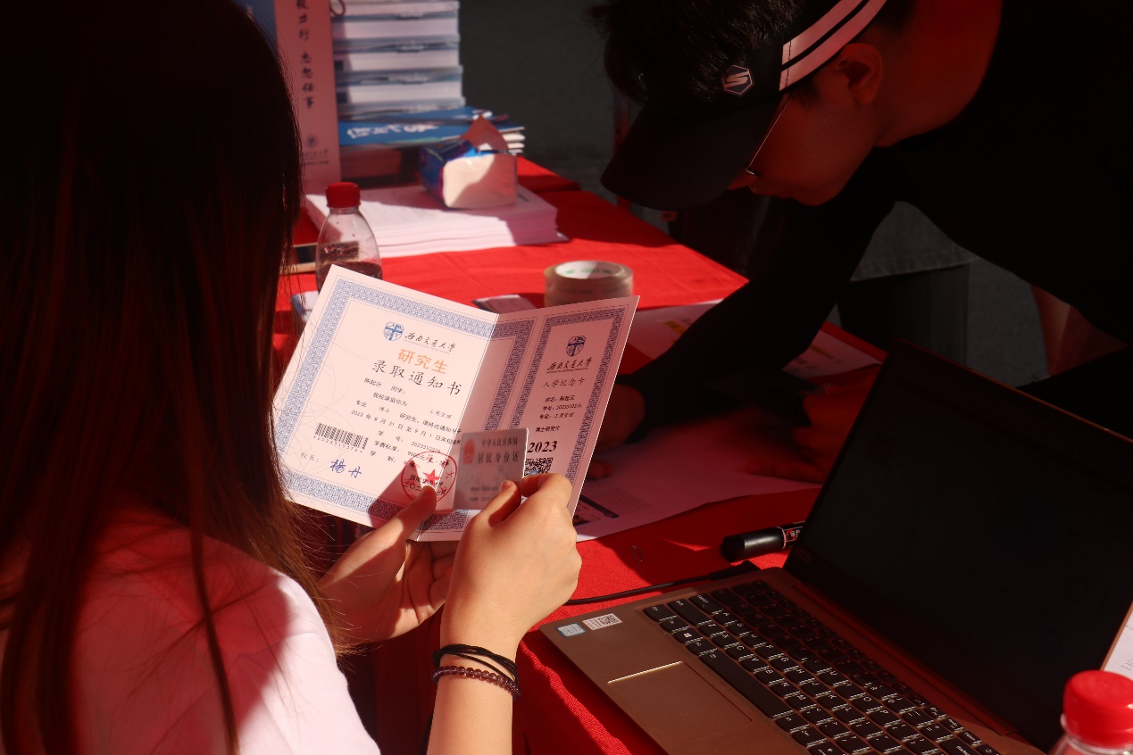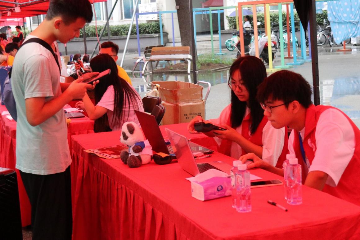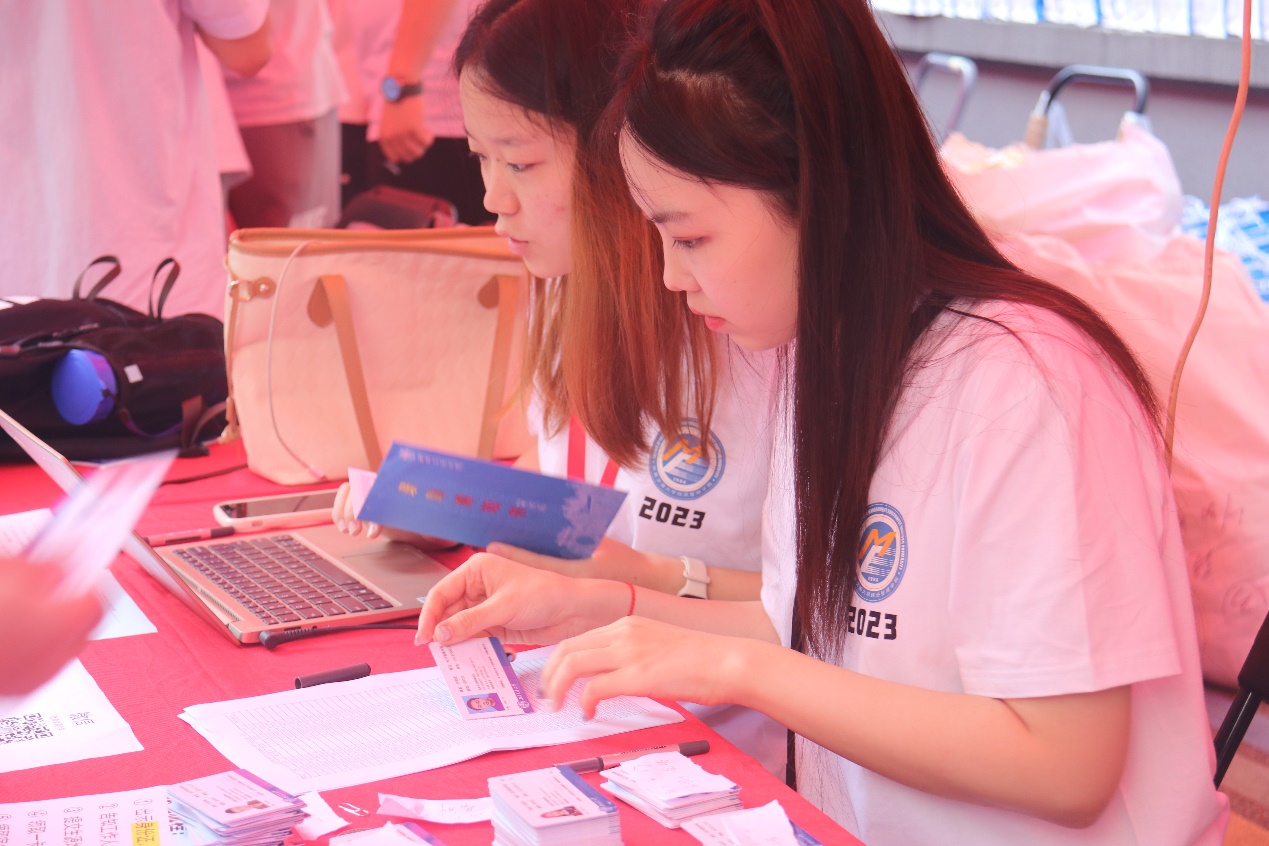 报到现场,工作人员和志愿者同学热情耐心地为新生和家长答疑解惑,报到注册、身份验证、入学登记、发放一卡通和宿舍钥匙等物品,一切都在有条不紊地进行着。