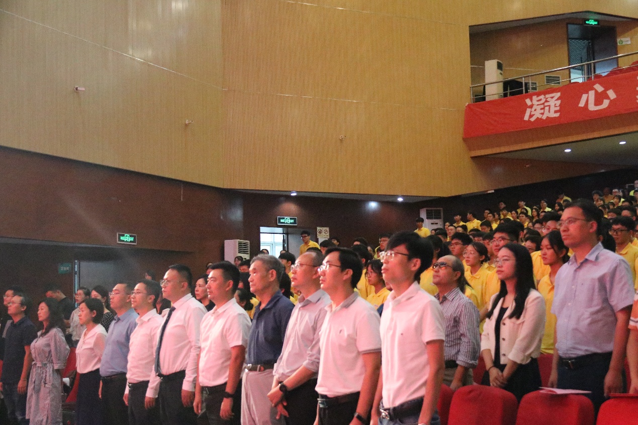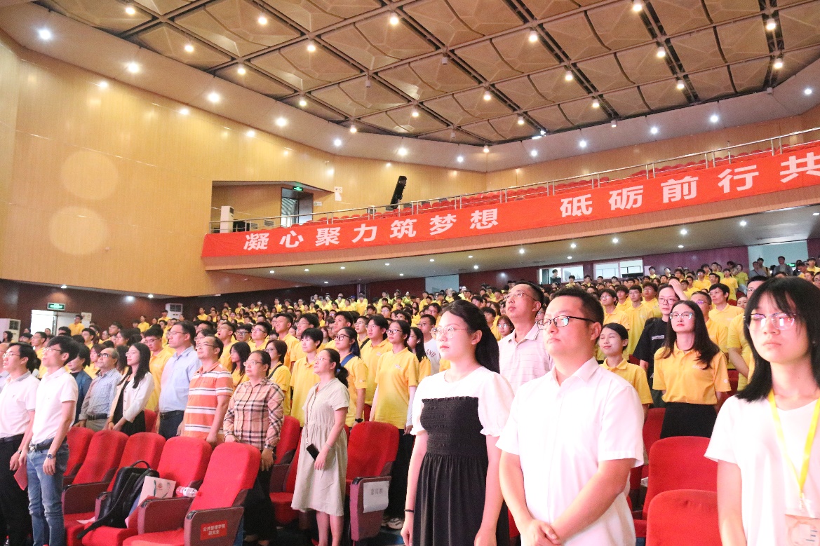 活动最后,全场起立奏唱校歌。当熟悉的校歌旋律再次响起,这场温馨而又庄重的开学典礼迎来尾声,但2023级新生的新征程正拉开序幕,精彩的老员工活正等待着大家的到来。