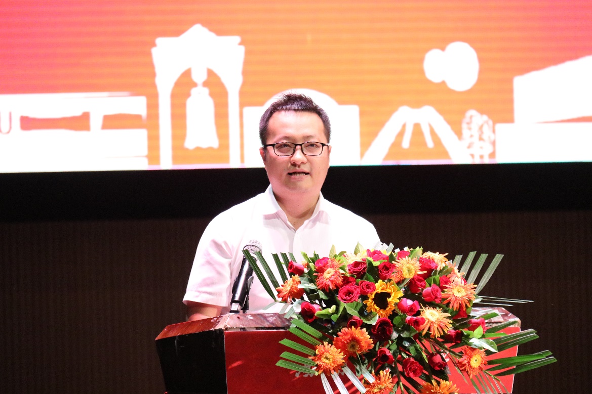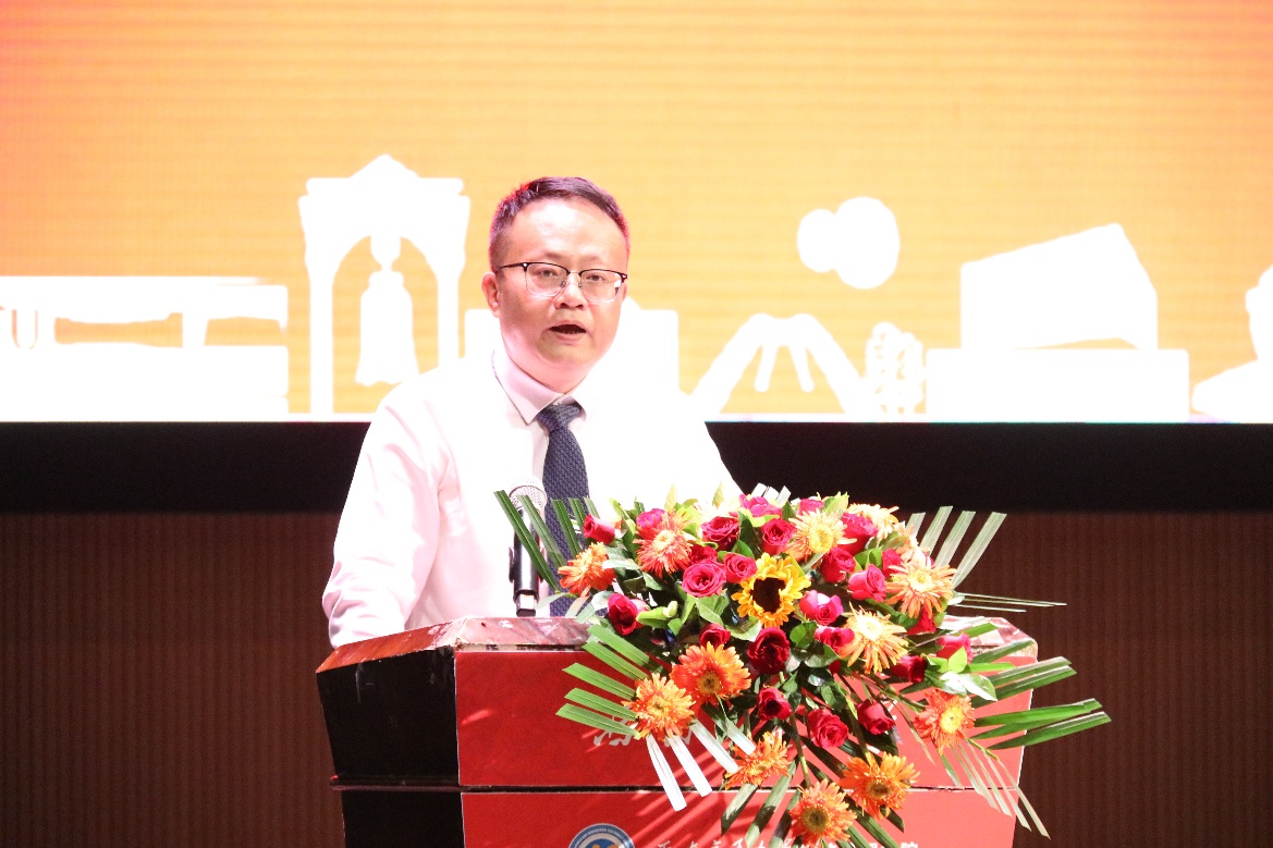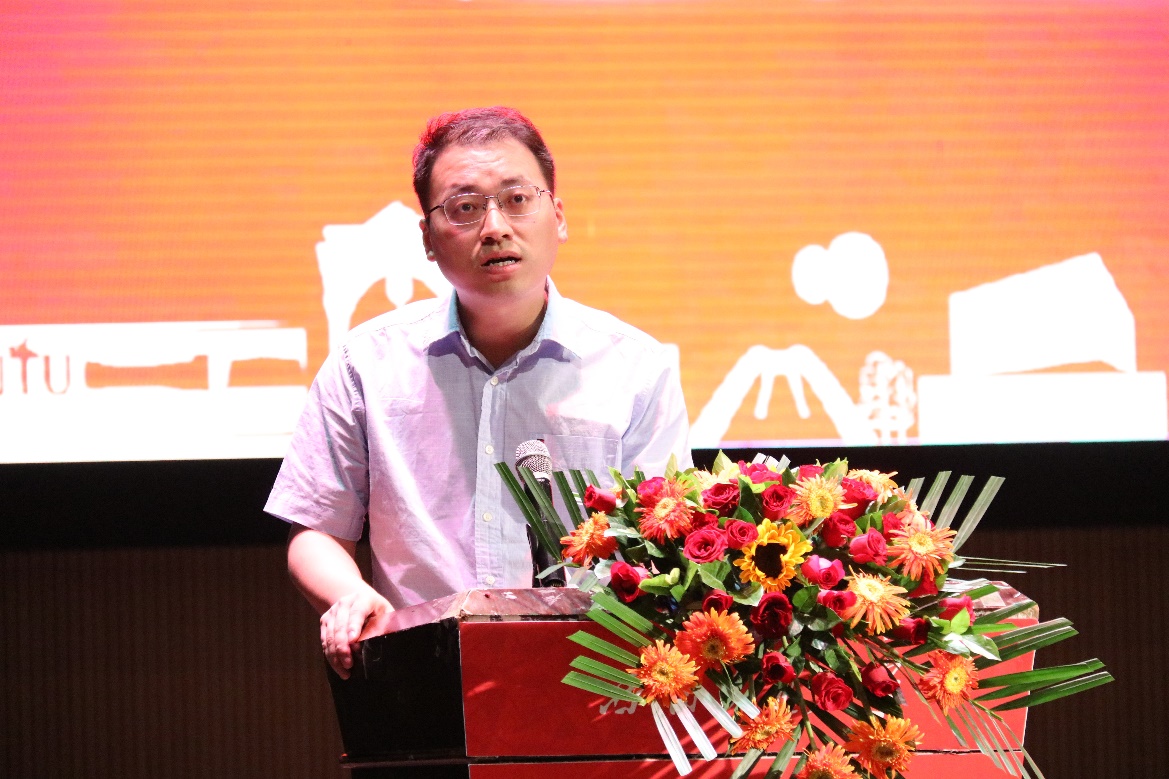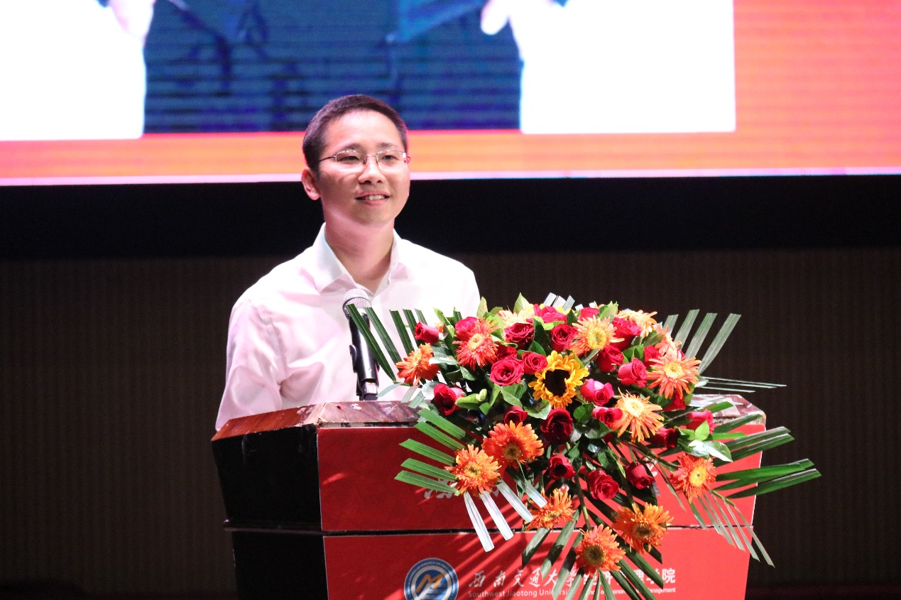 大会第三项,优秀员工代表郑世锋致辞。他分享了在交大学习的心路历程,给同学们献上了真挚的祝福与建议。他提到制定清晰的人生计划并不断为之奋斗的重要意义,由衷地希望同学们能够坚守“竢实扬华、自强不息”的初心与使命,不畏困难,勇往直前,把握青春大好时光,收获精彩老员工活。