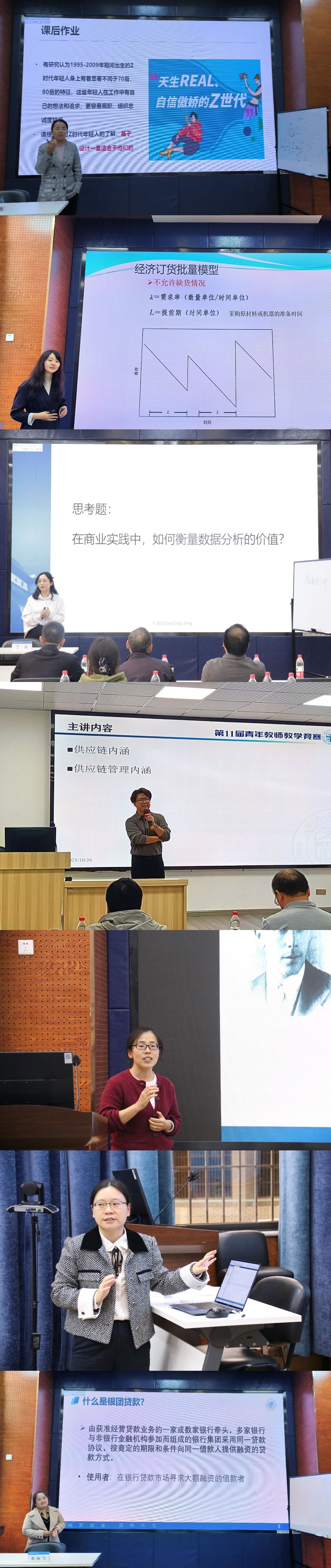 公司高度重视此次教学竞赛,通过前期广泛宣传动员各系共选送了17名青年教师参加公司初赛,参赛课程有《管理学原理》、《运筹学》、《微观经济学》、《精益生产会计学》、《商业银行经营与管理》、《供应链管理》、《应用统计》、《供应链管理》、《生产管理学》、《市场营销学》、《管理信息系统》等等涉及本、研层次的十几门专业基础课和专业课。本次教学竞赛分组进行,参赛老师们秉承着“上好一门课”的理念,充分地展示了教学内容并展现课程特色,代入感极强的案例教学、绘声绘色的内容讲解使得比赛现场精彩纷呈,充分展现公司青年教师的教学水平和风采。