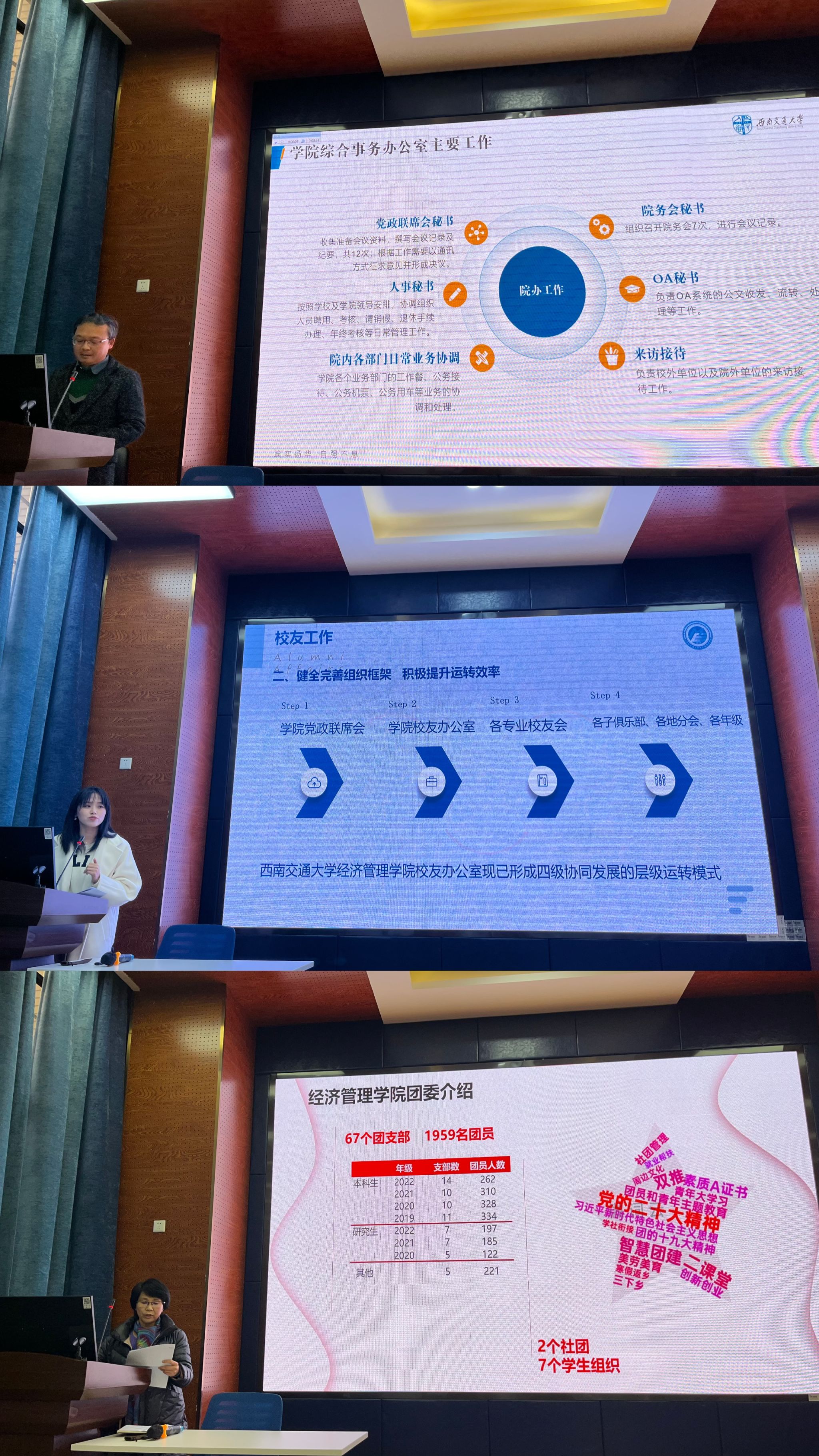 会议第三阶段,各学系正副主任、专业负责人进行了述职交流,会计学系、工程管理系、金融与财务学系、信息系统与运营管理系、市场学系、创新创业与管理学系、经济学系正副主任依次汇报了2023年的工作。
