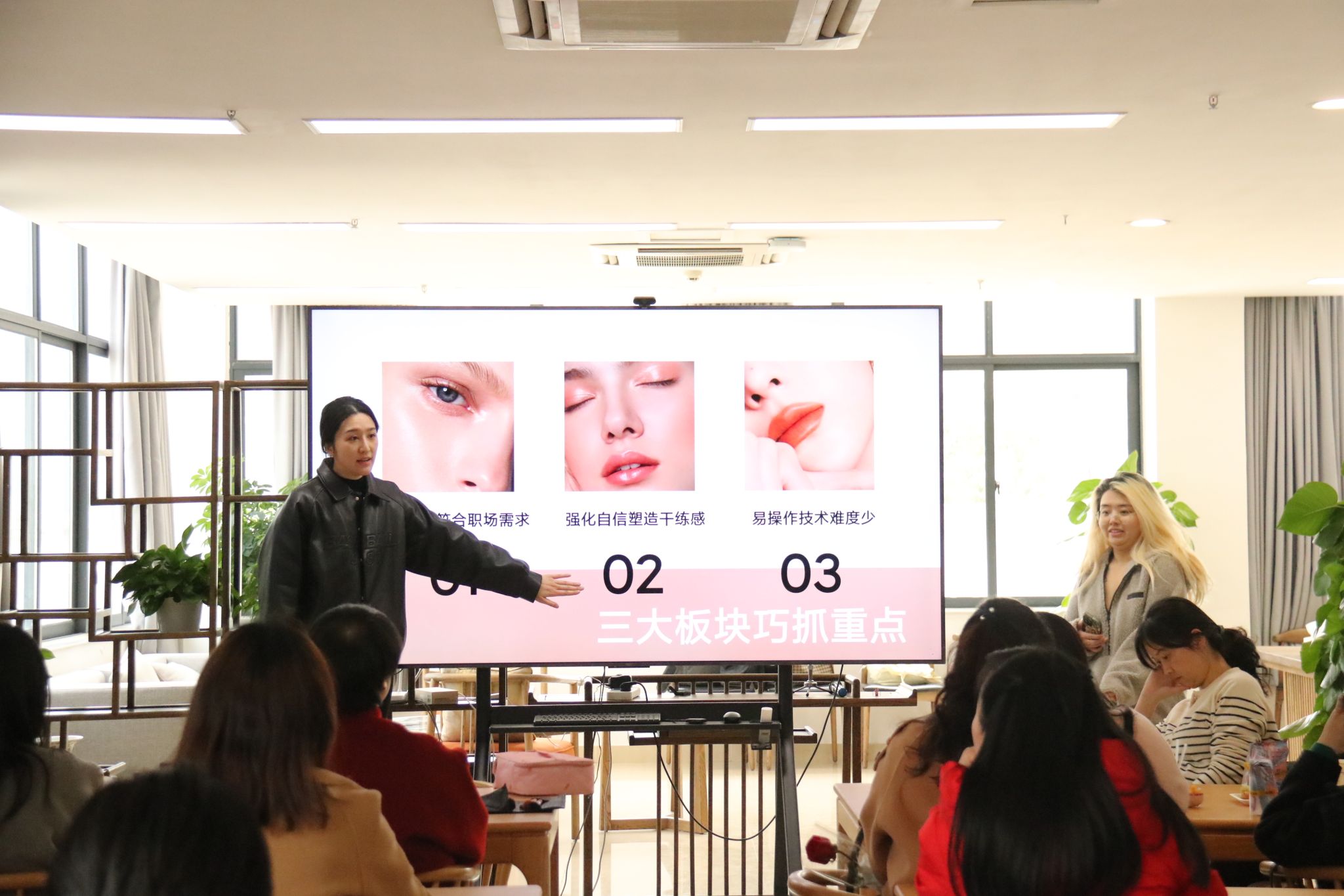 此次活动专门邀请了毕业于法国巴黎ITM化妆视觉公司、有欧盟认证彩妆造型师高旖旎老师,为各位女教工讲解化妆品的选择及化妆技巧,尤其是在繁忙的工作节奏中如何快速打造优雅通勤妆,既简洁自然,又符合职场要求,易操作且技术难度小,用最短的时间快速高效地提升气质,强化自信,展现完美的状态。
