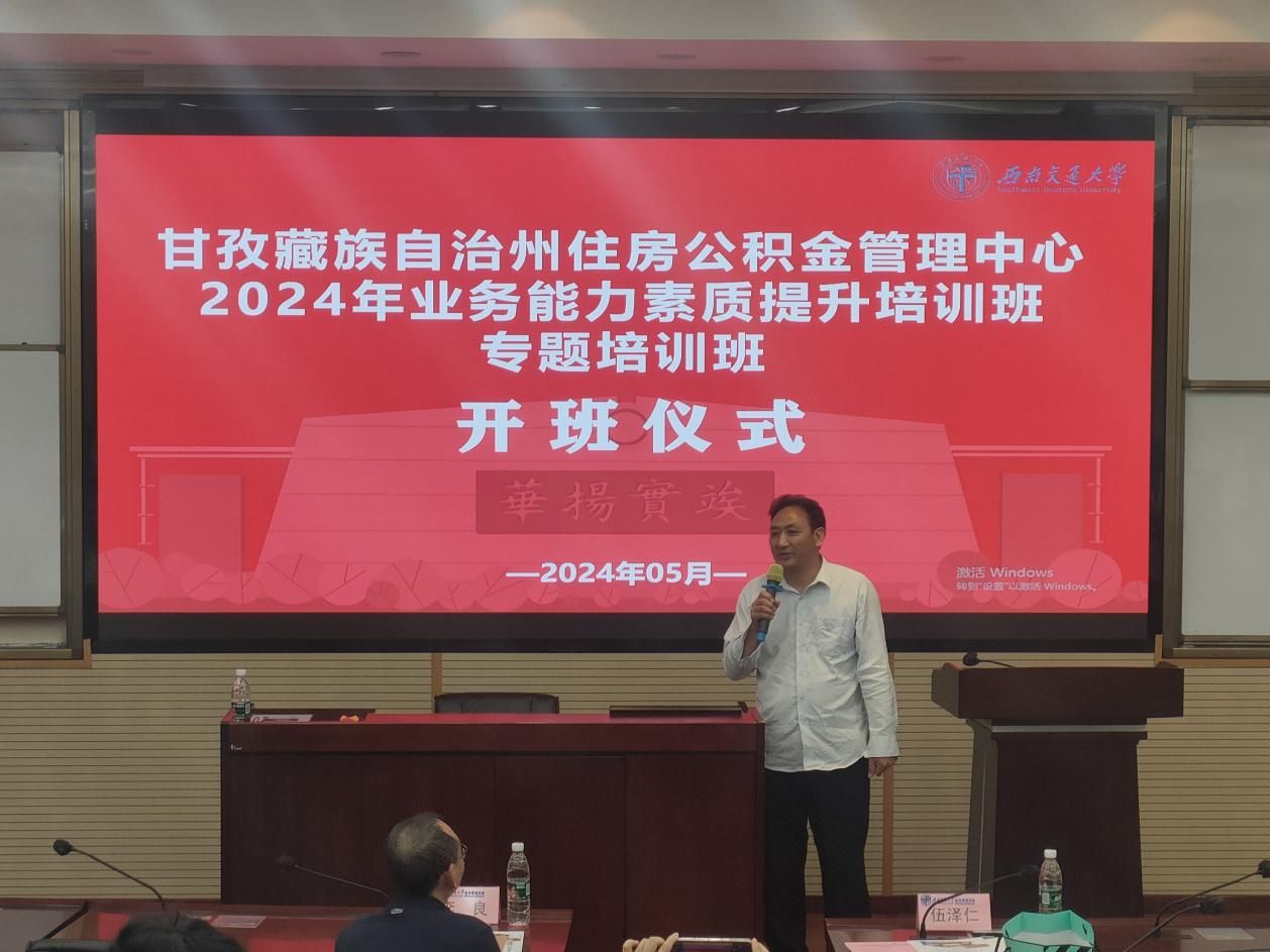 2024年5月21日上午08:30,由公司承办的甘孜藏族自治州住房公积金管理中心2024年业务能力素质提升班开班仪式在九里校区0号楼0204报告厅顺利举行。甘孜藏族自治州住房公积金管理中心党组成员、理塘管理部主任伍泽仁,beats365副经理李良出席开班仪式。