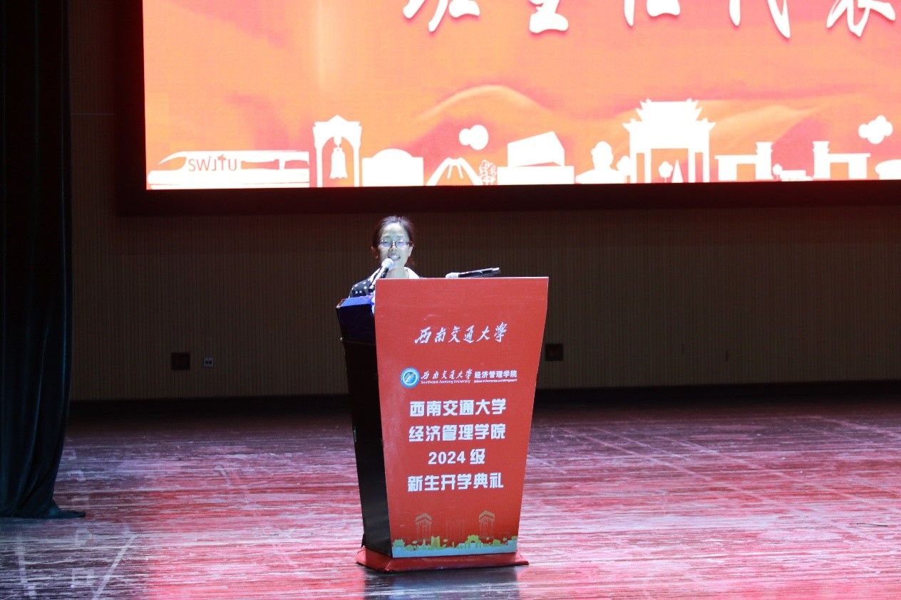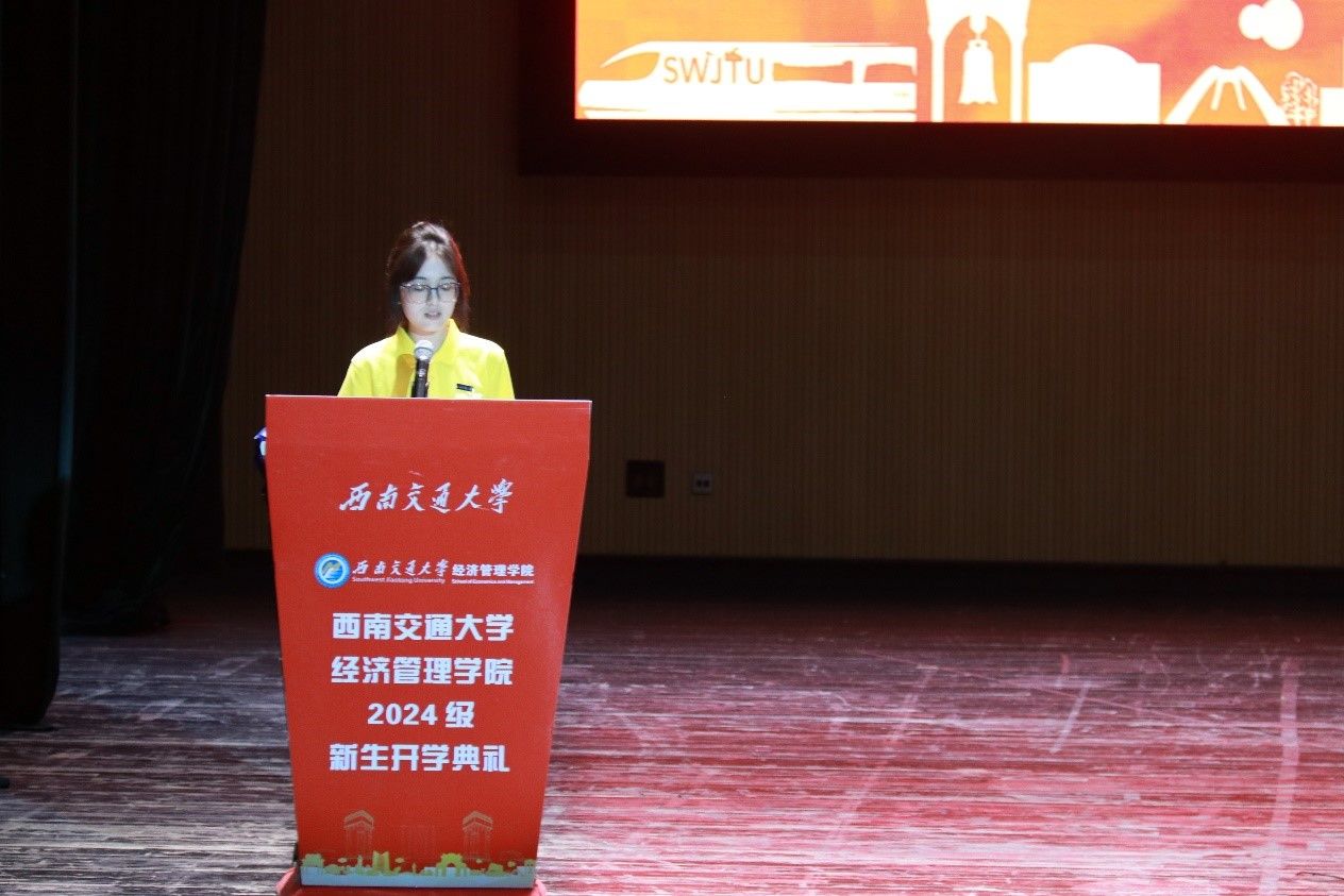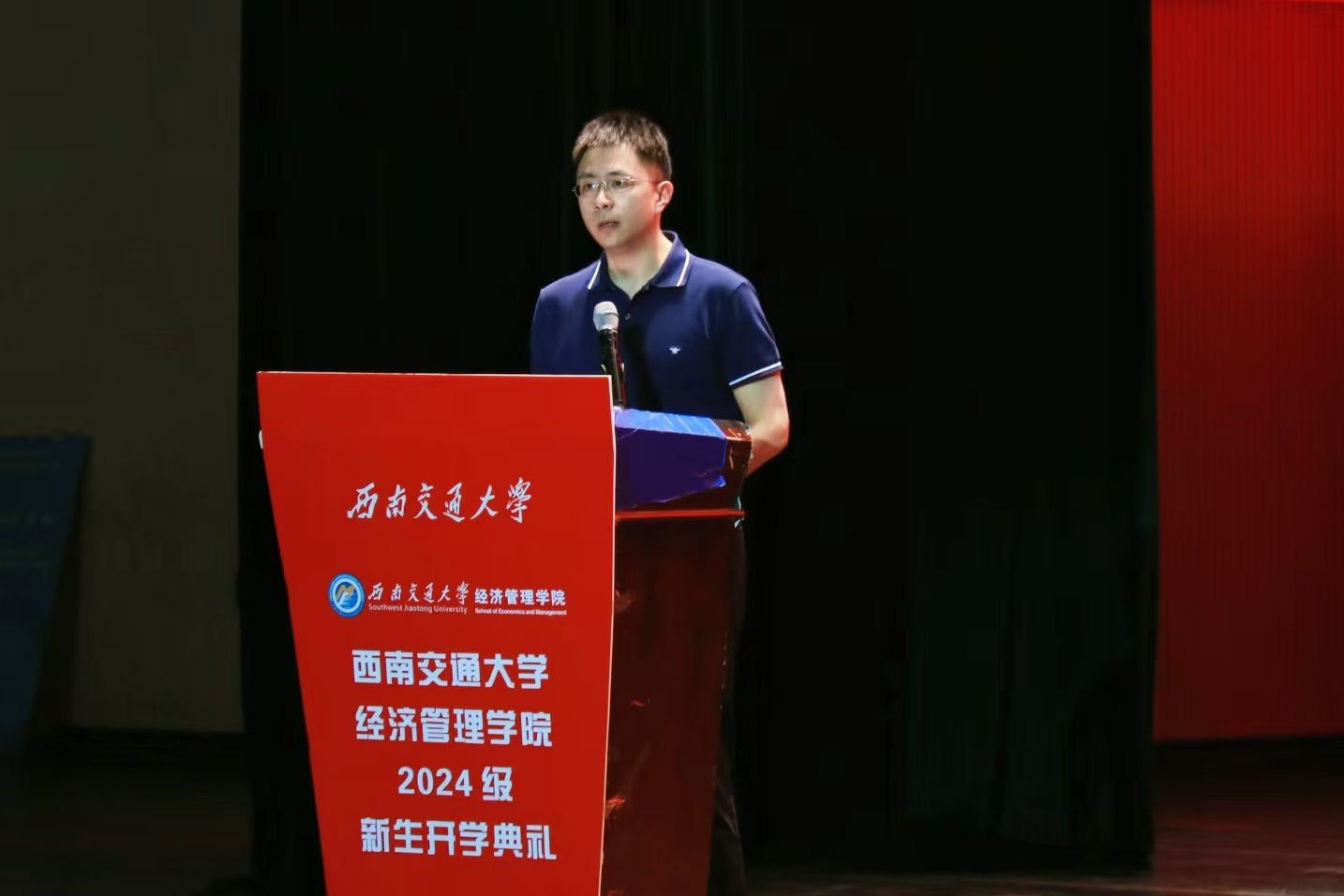 议程二,公司经理致辞。韩科首先对2024级新生的到来表示热烈欢迎和由衷祝贺。接着,他向同学们强调了大学在个人发展中扮演的重要角色,并提出三点建议:第一,青春无悔,不负芳华。希望大家树立远大的理想,将个人的成长与国家发展紧密相连,践行“请党放心,强国有我”的青春誓言,以饱满的热情、坚定的信念和不懈的努力,书写青春华章,贡献青春力量。第二,道阻且长,行则将至。他提到,在求学路上,大家应当不畏困难,迎难而上,勇攀知识高峰。第三,健壮体魄,陶冶情操。他表示,在大学期间,要注重身心健康,提升个人的综合素养,向上、向善、向美,努力成长为一个德智体美劳全面发展的人。未来,韩科希望大家传承“精勤求学、敦笃励志、果毅力行、忠恕任事”的交大校训,弘扬“竢实扬华,自强不息”的交大精神,谨记“格物致知,和合共进”的经管院训,勤而行之、日有所进,早日成长为堪当民族复兴大任的时代新人,奋力书写为中国式现代化挺膺担当的青春篇章!