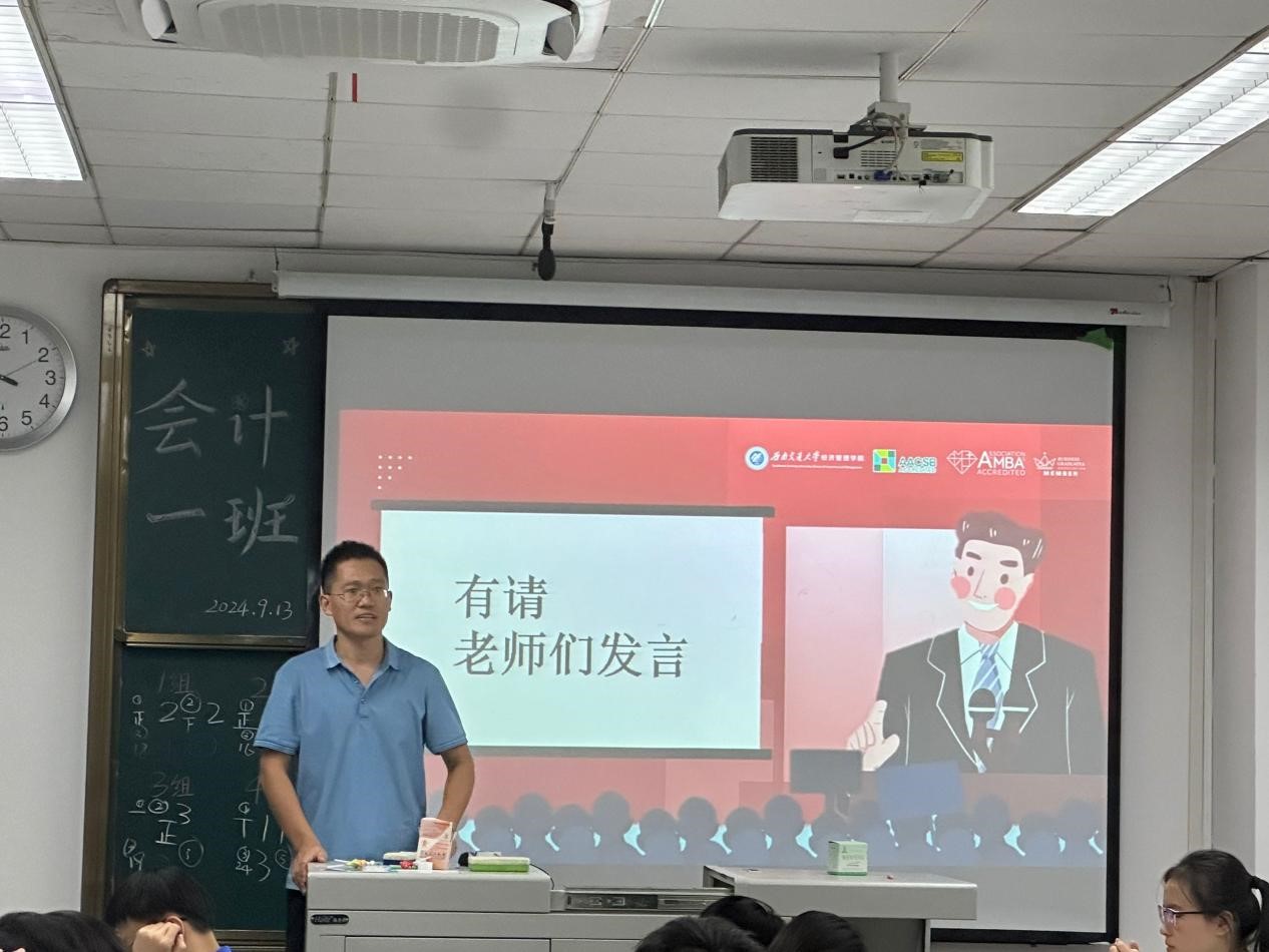 会计一班班导师韩士民、王嘉不仅对会计专业学习技巧进行深度剖析与解读,还提出了对未来专业发展和员工就业前景的展望。两位班导师认为职业发展不是一场以毕业为终点的赛场,大二年级对未来职业规划有困惑是正常的,这种迷茫并不会使人生始终停滞不前,只要坚持学习,多实习多体验,最终都会看到自己人生的赛道。