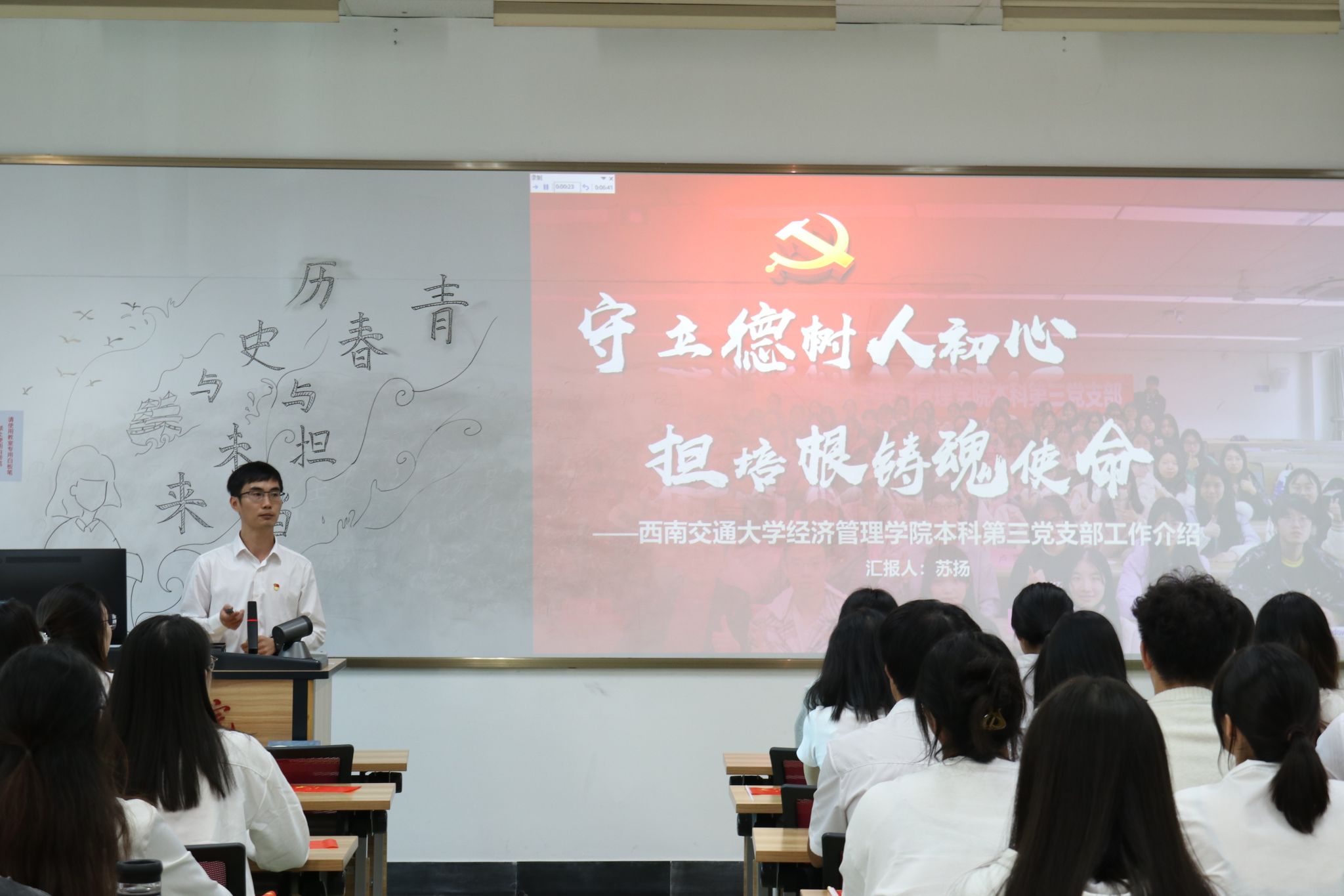 随后,同志们前往川大商公司大楼进行支部共建。川大商公司本科第二党支部书记张宇同志以及西南交大beats365本科第三党支部书记苏扬同志分别针对各自支部的工作特色与亮点进行分享。张宇同志从党建引领员工社区育人新业态和榜样领航青年行、共建一流聚力量两个方面展开介绍了党支部工作;苏扬同志则先简要介绍了beats365官方网站校史以及beats365院史,而后分四个方面介绍了党支部的工作方法与支部特色,加深了双方党支部的了解。