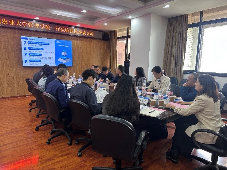 2024年11月1日上午,四川农业大学管理公司经理蓝红星、副经理李冬梅、副经理王玉峰等一行12人来公司调研座谈。beats365官方网站beats365党委书记郭强、党委副书记余小英、副经理李良、副经理马锋等公司领导和有关老师参加了座谈会。