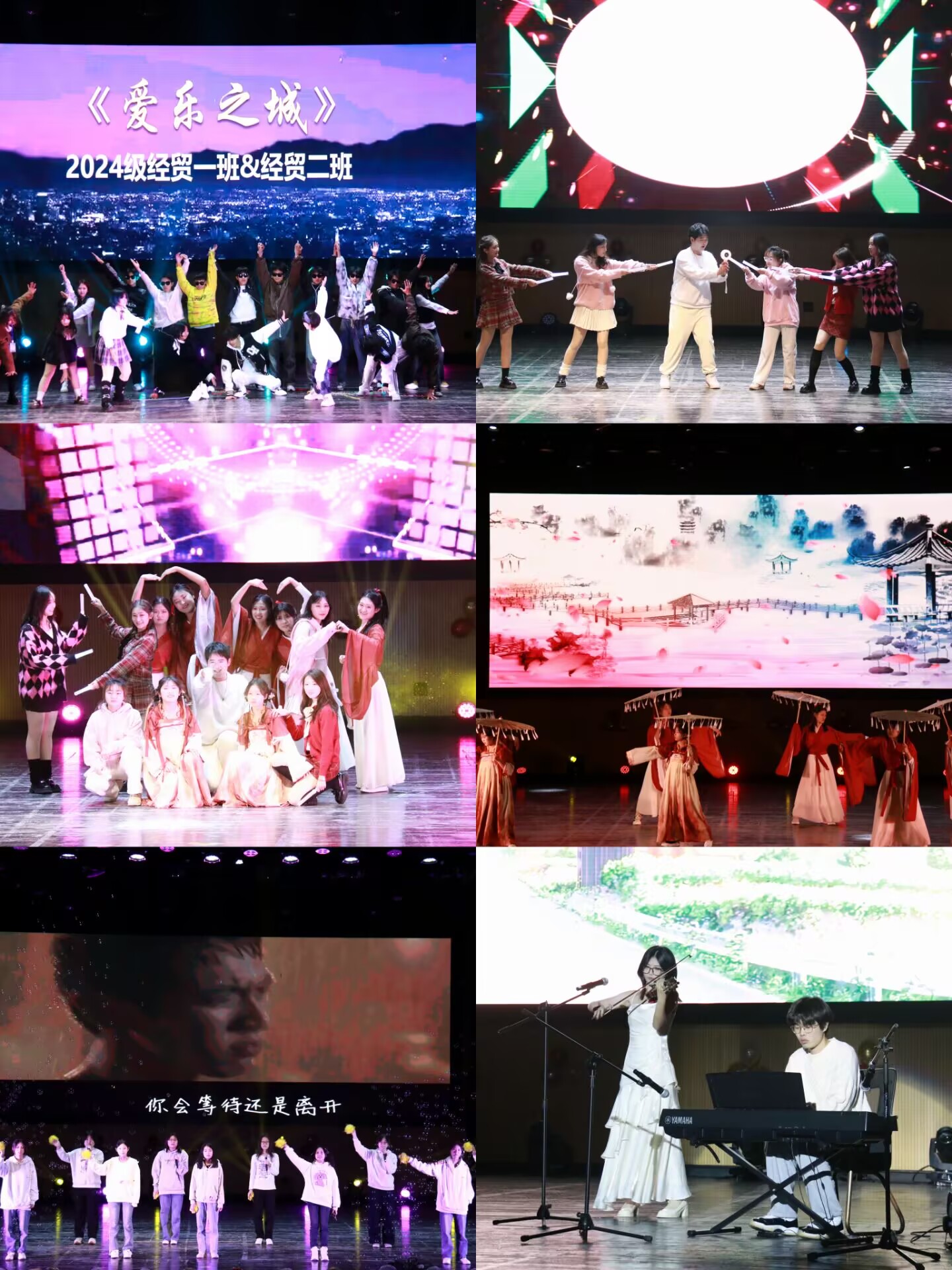 青春与悦动是第一篇章的主题词,经贸3班《觉醒青年》以幕布剧的形式,展现青年学子的热血与担当;硕士1班歌曲串烧《从第一天到未来式》、经贸1班和经贸2班音乐剧《爱乐之城》以及管理2班合唱《夜空中最亮的星》共同奏响了青春的旋律。硕士6班和硕士7班舞蹈串烧《舞动青春,梦想飞扬》以及管理9班《舞影下的晴天》以舞步诠释了青春的跃动。
