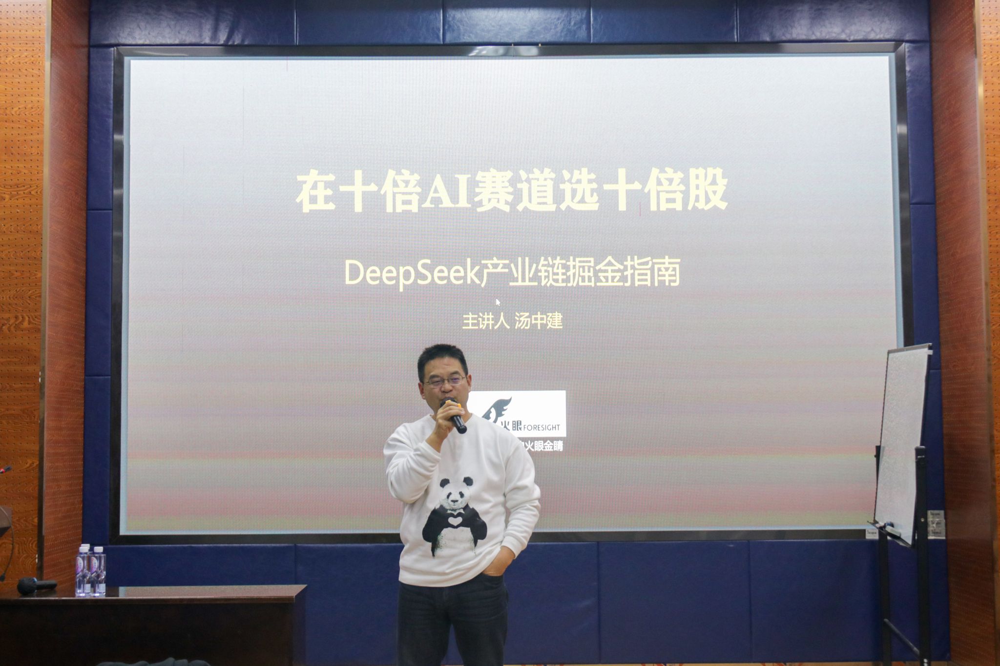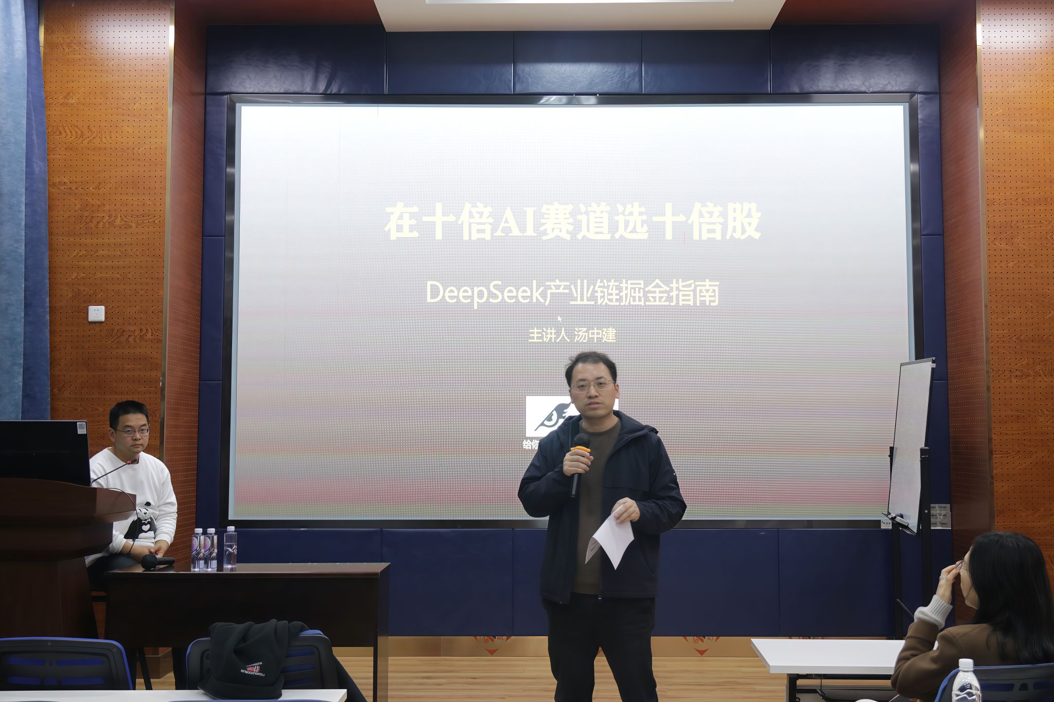 讲座伊始,汤中建结合自身经历介绍了DeepSeek的强大功能,展示了其具有的极大成本优势、丰富的应用场景及相应的政策红利,展现出AI赛道所具有的广阔前景和巨大潜力。