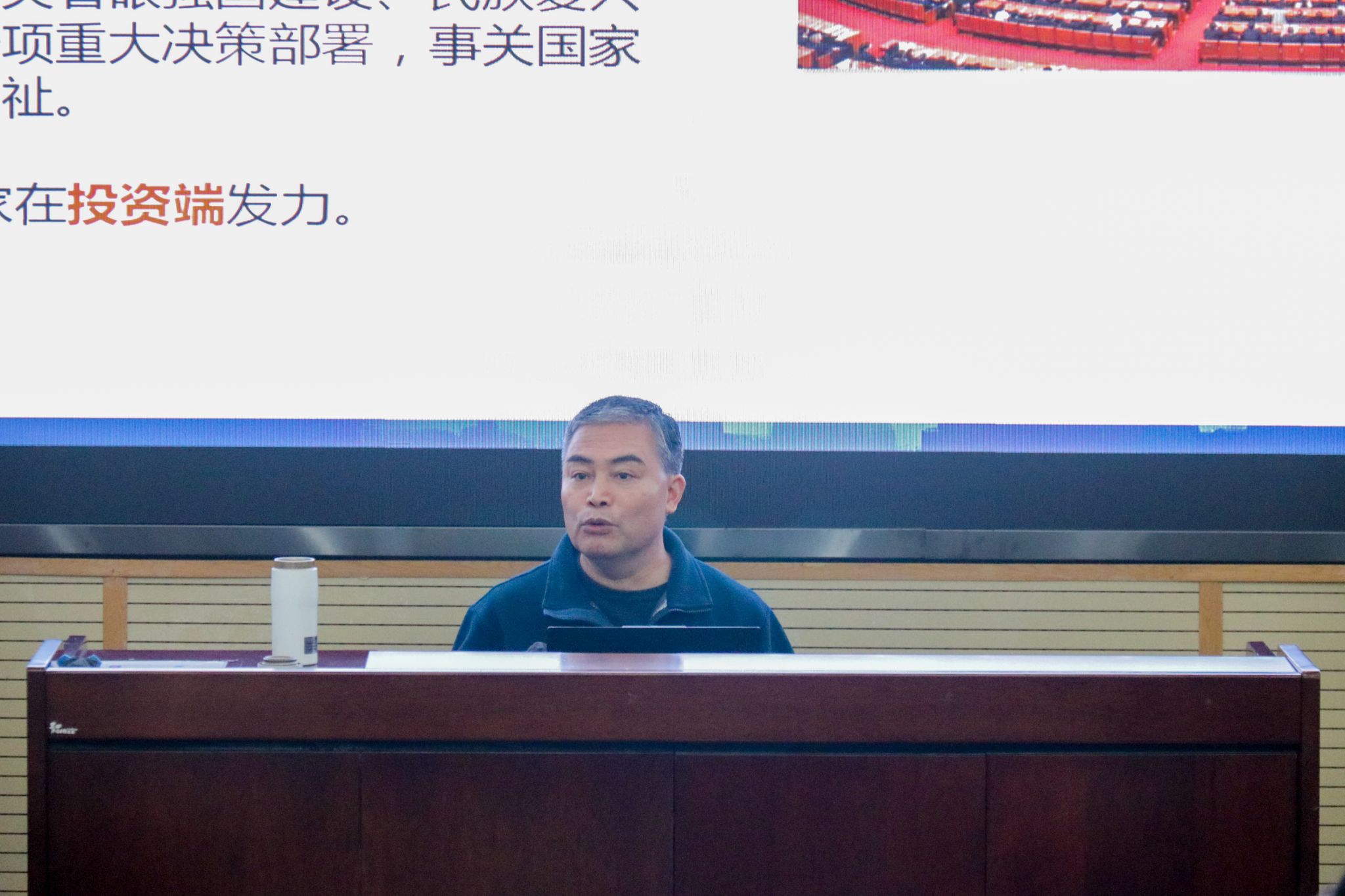 李成金运用经济学原理,从世界百年变局演进、国际国内形势等方面分析了“两重两新”政策的实施背景,从国家重大战略实施,重点领域安全能力建设,大规模设备更新,消费品以旧换新,政策的实施路径、实施成果等方面讲述了“两重两新”政策的主要内容,并详细介绍了四川省在落实“两重两新”政策方面的创新实践。