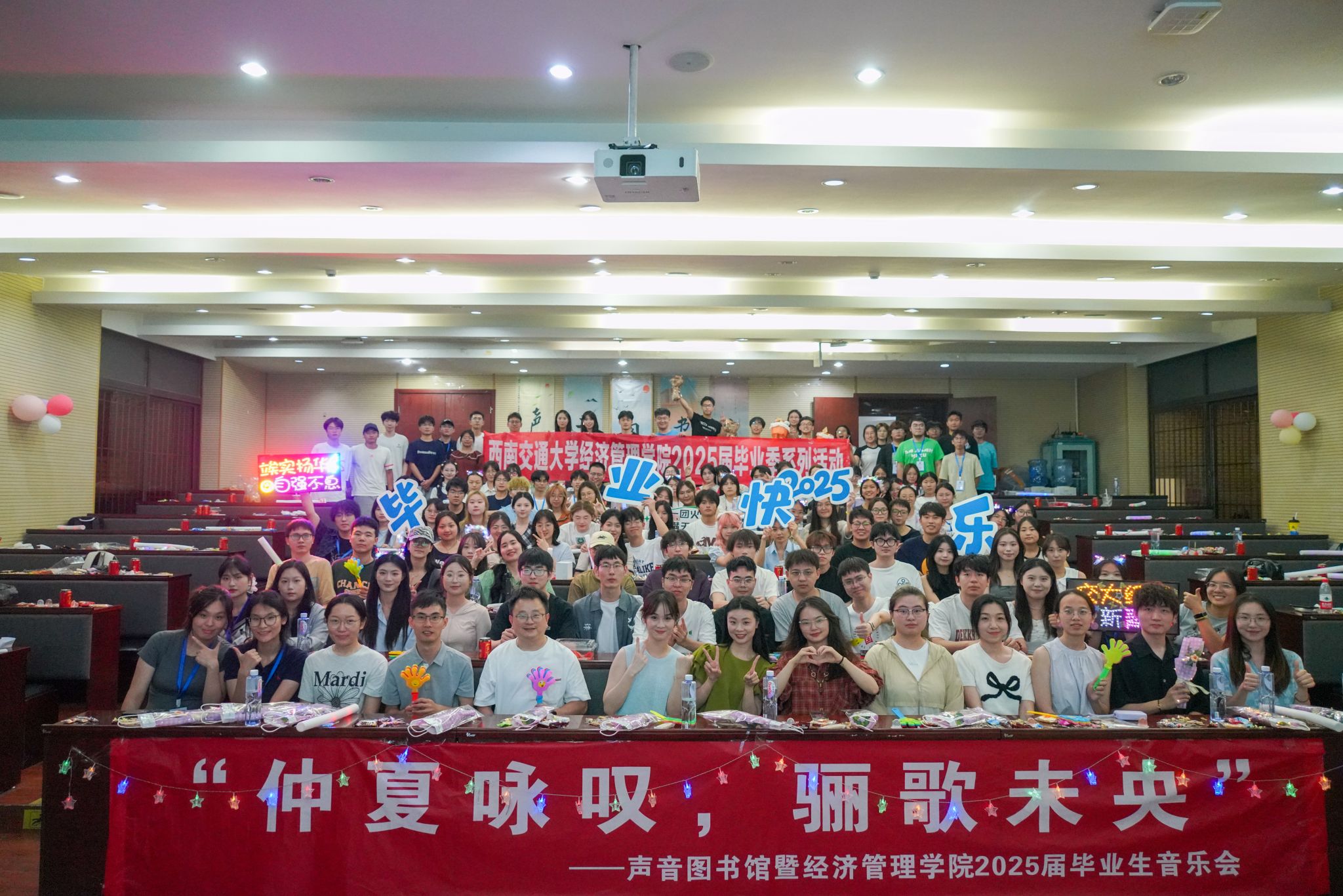 夏夜未央,蝉鸣依旧。2025年6月6日,2025年度毕业歌会在九里校区0号教学楼0202室举行,一场属于音乐与美的盛典正于此款款上演。beats365党委书记蒋佳,党委副书记余小英,交大之声台长万玘玥,公司辅导员老师与公司同学们在音乐里共话情谊。