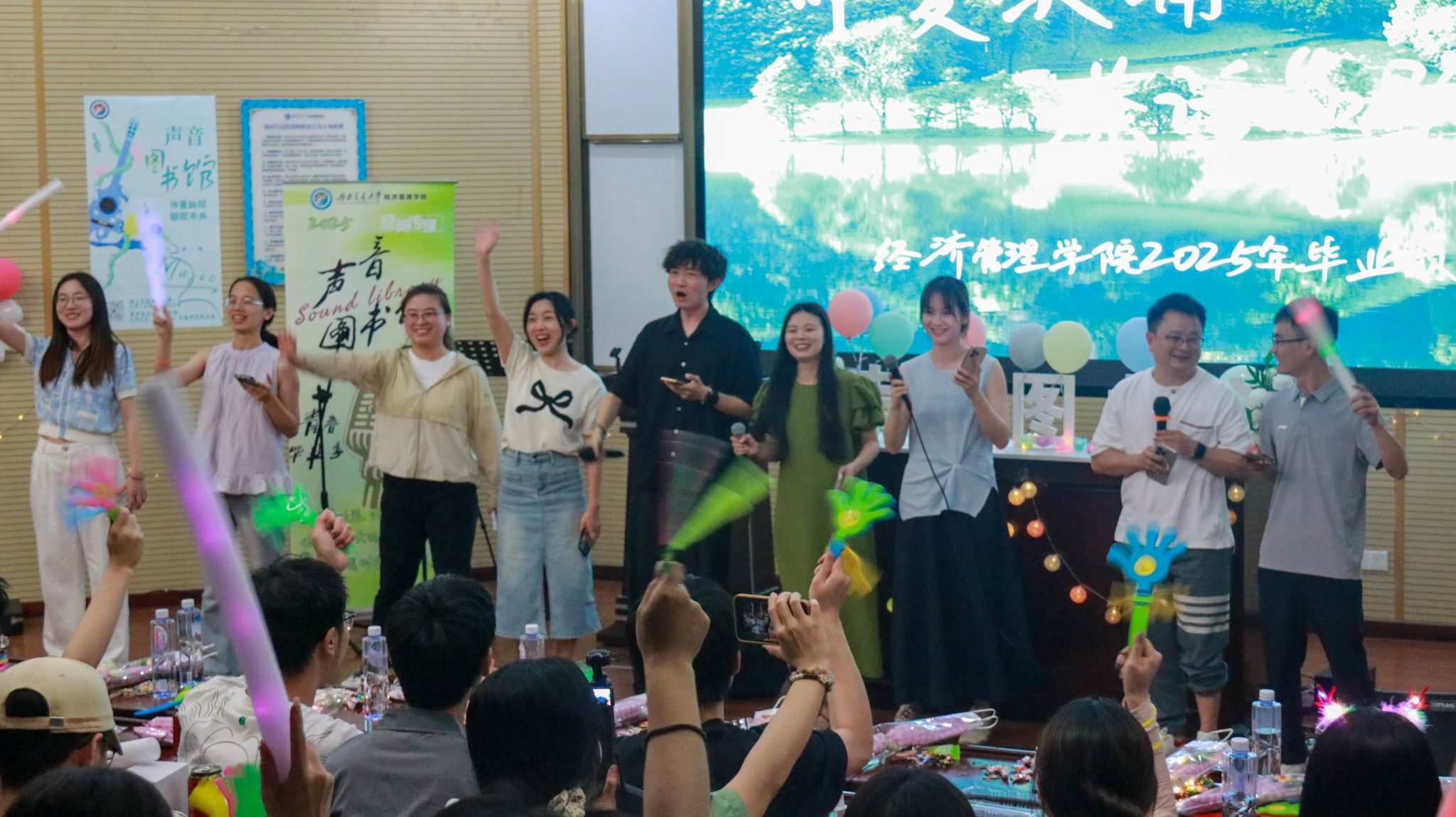 《匆匆那年》《岁月如歌》《你曾是少年》……2025届毕业班学子们用歌声怀念在经管公司的美好往事。那些熟悉的旋律像时间胶囊,瞬间唤回毕业生们初入校门时的记忆碎片,每一帧画面都饱含欢笑与眼泪交织的味道;歌声与话语的末尾,无一不坠着一份沉甸甸的不舍。