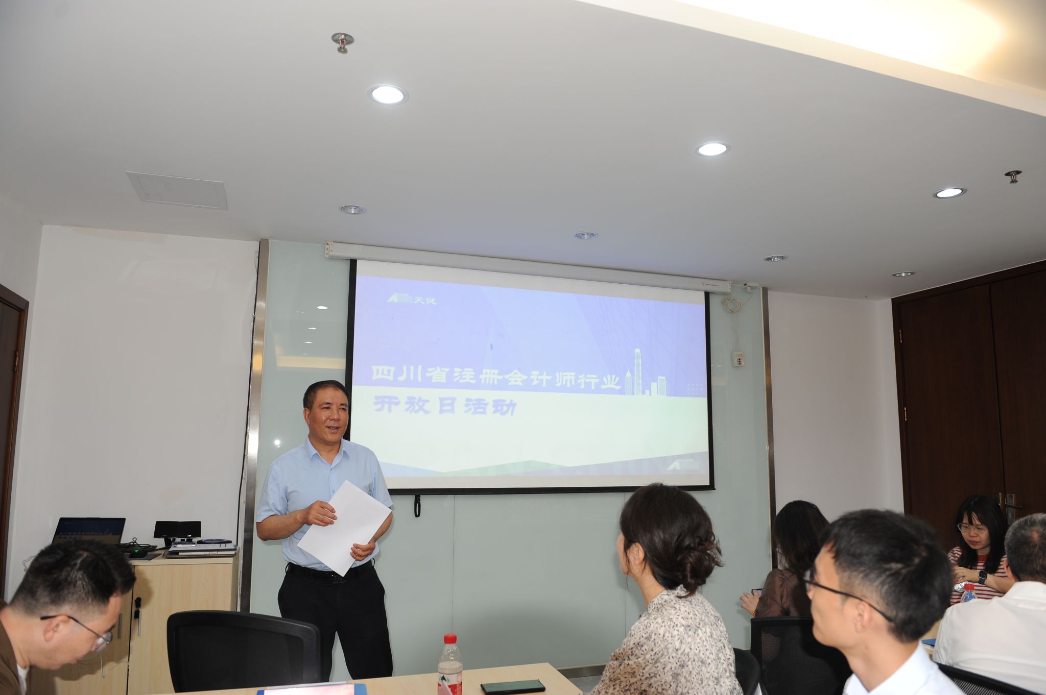 参观结束后,师生落座会议室,与事务所工作人员展开交流讨论。四川省注册会计师协会秘书长颜彦鼓励青年在会计行业坚守深耕,铸就复合型专业能力;四川分所总经理阮响华剖析了当今会计行业数字化转型以及行业边界模糊化的趋势,向交大学子发出实践邀请。随后,公司会计系主任叶勇介绍了公司会计专业的发展历史,期待通过本次交流参访进一步深化校企合作,为员工打开广阔的实践平台。