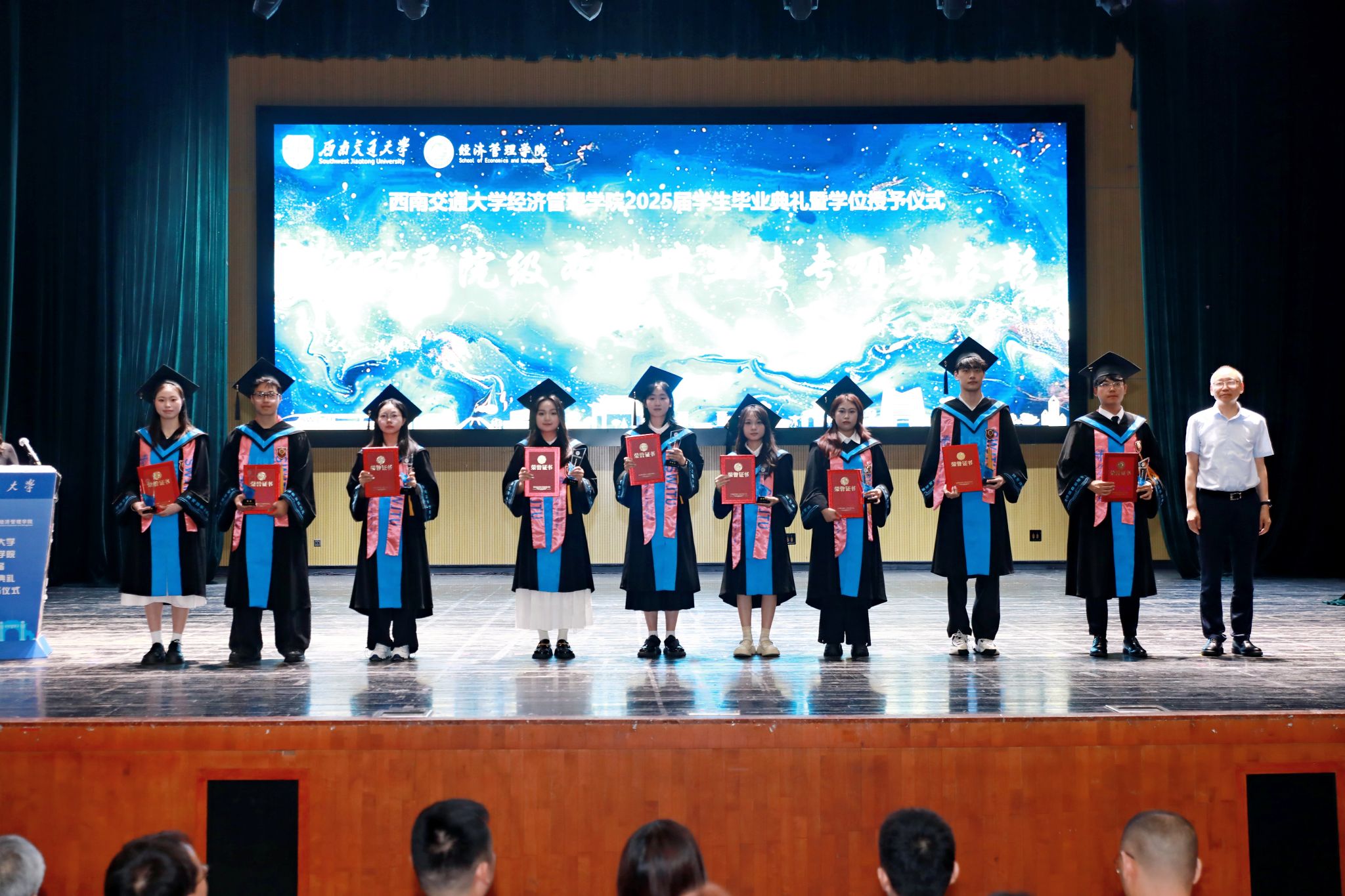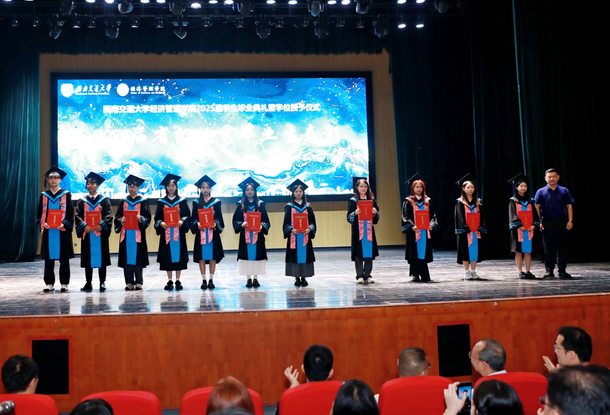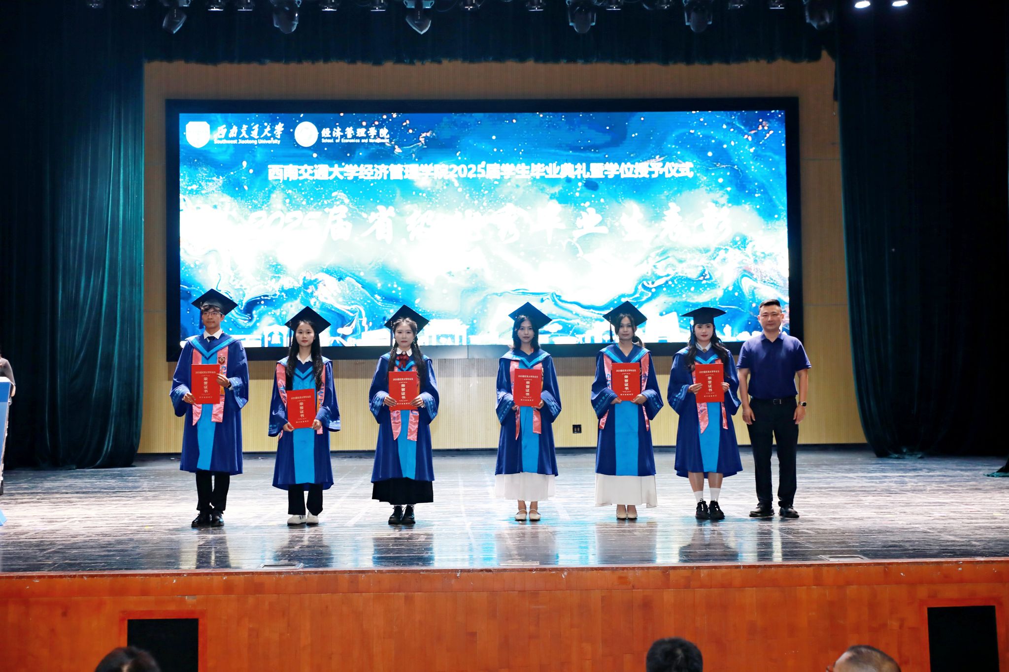 公司党委书记蒋佳宣读2025届本科生、2025届MBA毕业生院级荣誉获得者名单,公司副经理李良为获奖毕业生颁奖。院级获奖毕业生以勤勉为舟、以实干为桨,在专业学习、实践活动与集体建设中展现出卓越的综合素养。