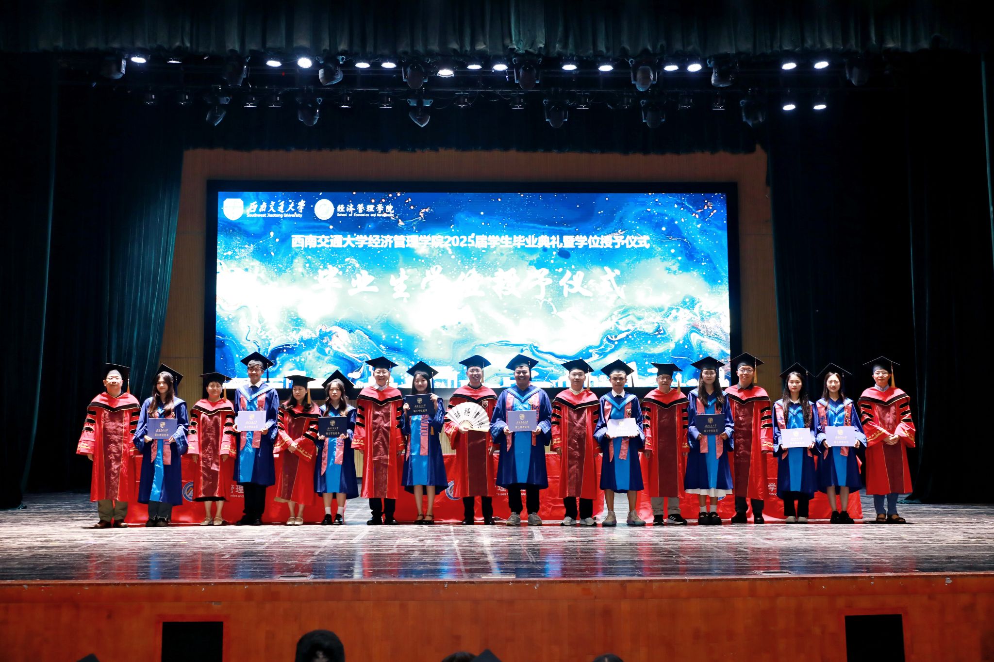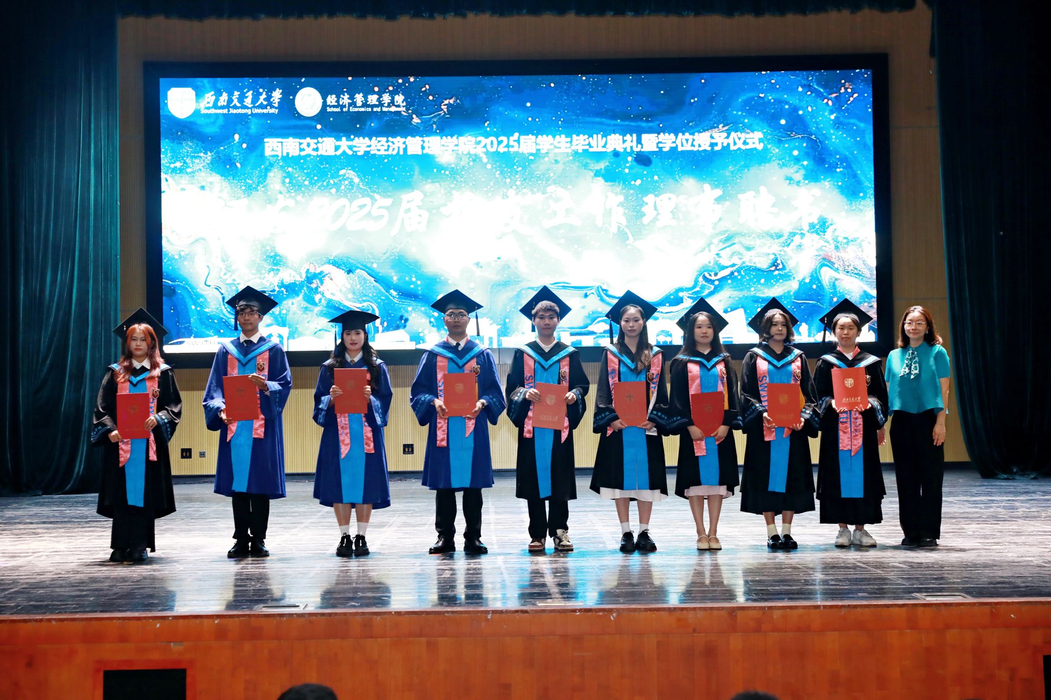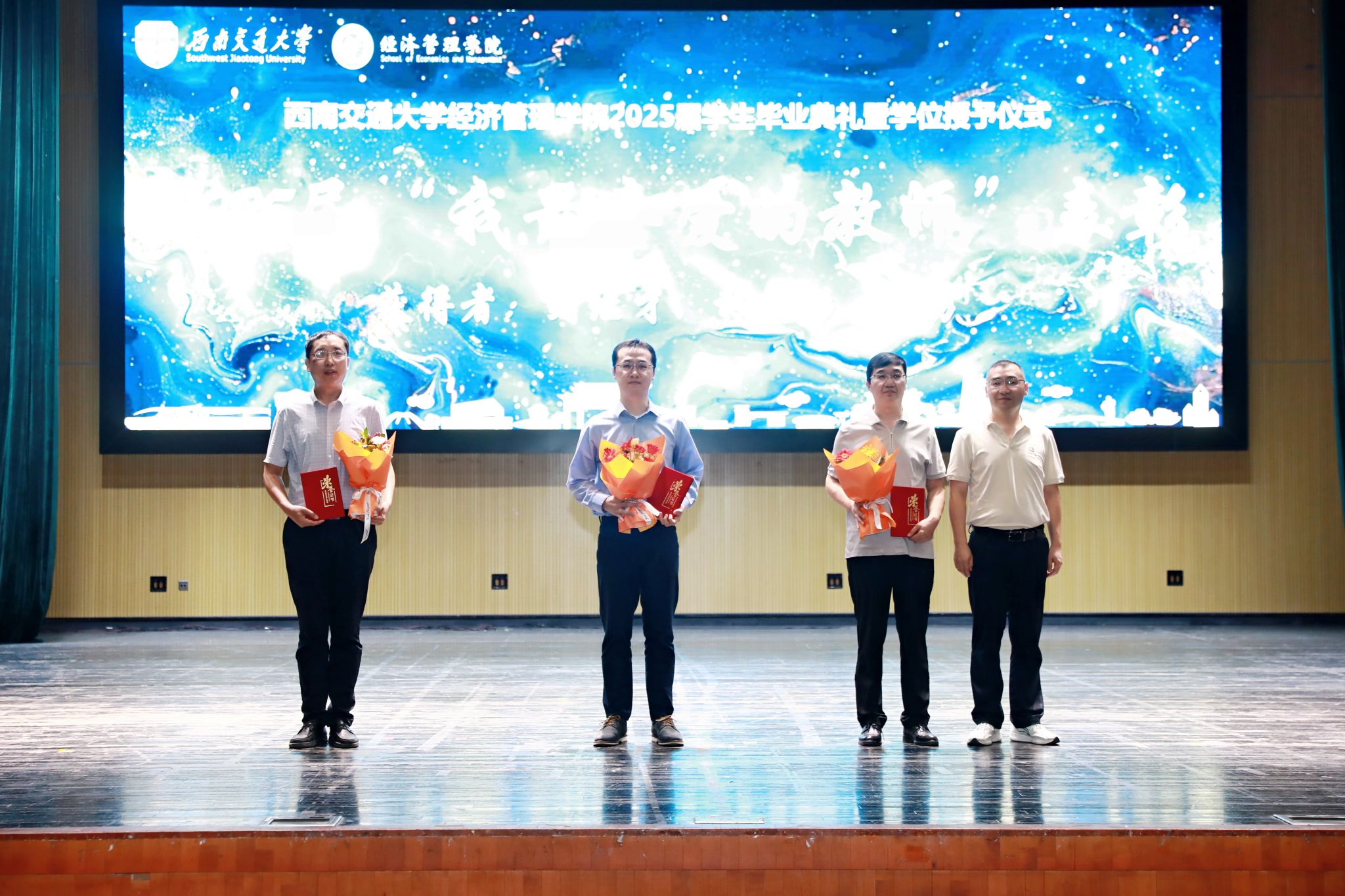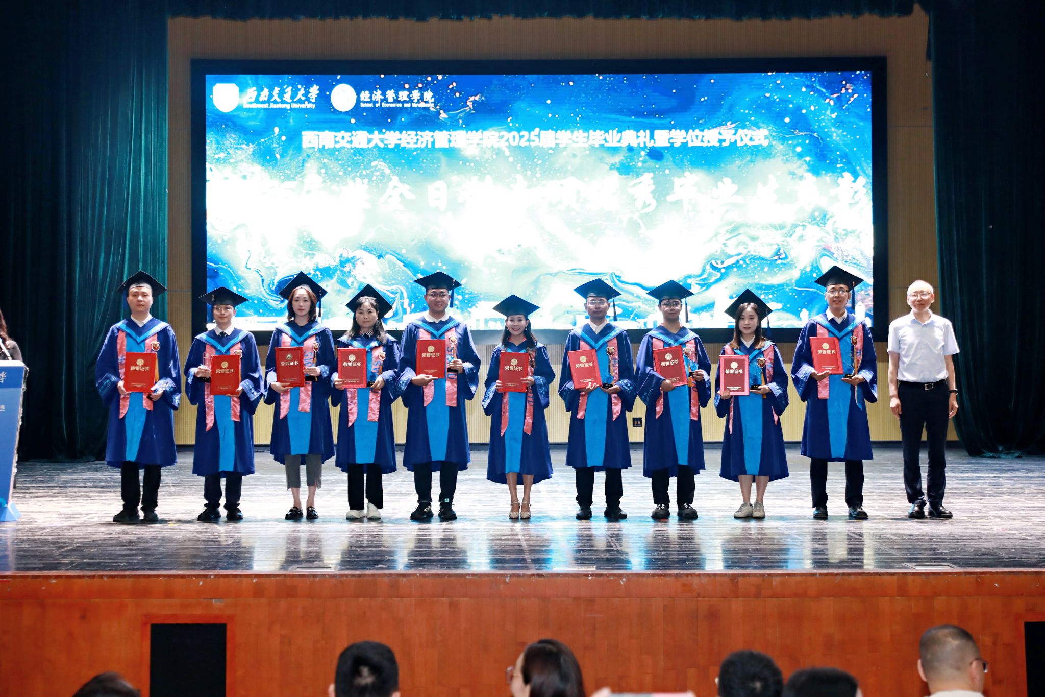 公司党委书记蒋佳宣读2025届本科生、2025届MBA毕业生院级荣誉获得者名单,公司副经理李良为获奖毕业生颁奖。院级获奖毕业生以勤勉为舟、以实干为桨,在专业学习、实践活动与集体建设中展现出卓越的综合素养。