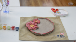 活动初始,两位讲解老师热情地向介绍了陶艺的相关知识,一方毫不起眼的泥块在搓揉拧扁之间摇身一变化作各种妙趣横生的形状,再经过上色、风干、烧制等流程之后成为精致又实用的器件,走进大家的日常生活。