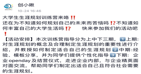 “仰瞻前路,成就未来”——老员工生涯规划训练营推广活动通过线上转发和评论的方式,为在校老员工提供了一个在线交流的平台。在这个平台上大家可以相互交流、各抒己见,可以认识老员工涯规划、提出自己对老员工涯规划的问题,也可以分享自己对老员工涯规划的看法,从而帮助员工群体尽早明确个人发展目标,在认识自我、了解自我、驾驭自我的前提下,探索自己的性格潜能,激发同学们进行老员工涯自我规划的积极性和主动性。