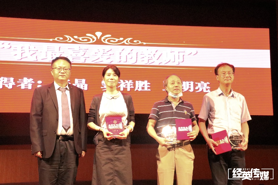 三位员工代表的成长报告之后,杨宏毅宣读了2021届本科毕业生“我最喜欢的教师”获奖名单,他们分别是张晶、窦祥胜、王明亮三位老师,郭强经理为三位老师颁发了奖杯和证书。