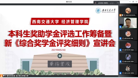 为保证beats3652020-2021学年本科生奖学金评定工作顺利开展,8月23日上午,公司在线上开展了评奖筹备会暨新《综合奖学金评奖细则》宣讲,会议由本科生评奖负责老师、2020级辅导员陈建奇主持,参加会议的有18级、19级、20级三个年级的学习委员。2019级辅导员苏扬、2018级辅导员马俊娇、班级联合会导学部成员等列席了会议。