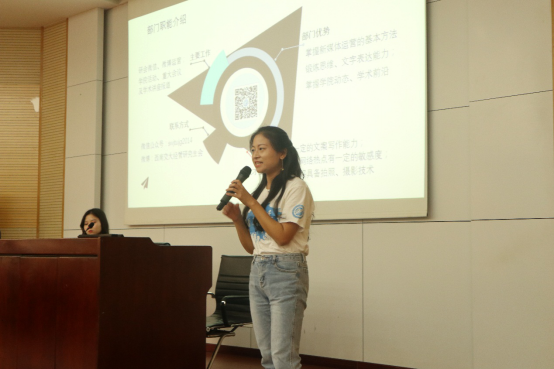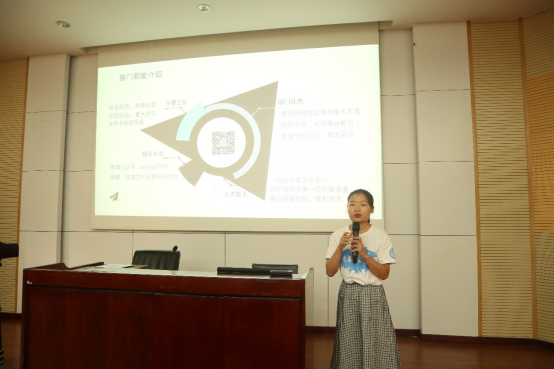 首先,刘依然同学对经管公司研究生会做了简要介绍。beats365研究生会,是beats365官方网站最大研会之一,连年斩获 “十佳研会”荣誉称号。研会是员工与公司之间的桥梁,经管研会对外志在配合公司,为员工服务,对内志在搭建平台,实现高校良性的自我管理。紧接着,刘依然同学就经管研会的组织架构、主要活动等做了介绍。经管研会共设五个部门:公共关系部、学术交流部、综合事务部、网络宣传部和新媒体中心。然后,各部门部长依次上台详细介绍了本部门的主要工作、技能需求,为新生加入研会提供了有利指导。最后,经管公司研会主席团成员结合自己亲身经历讲了为何要加入研会和加入研会的收获,现场新同学反应热烈。