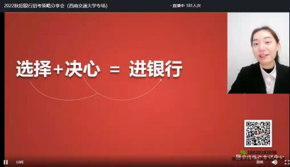 本次分享会由学信银行考试中心专业培训师、工商银行与建设银行特邀内训师、《银行考试新大纲》编委会委员陈瑞洁老师主讲。会议伊始,陈老师对银行招聘进行了概述,其中包括银行就业前景、招聘时间、招聘流程等。陈老师指出,银行业在中国金融业中处于主体地位,是金融行业最为人熟知,也是最为稳定的行业,进入银行意味着将有更多机会去接触高端金融行业。听了陈老师富有感染力的讲说,即使隔着屏幕,学子们也跃跃欲试。接下来,陈老师分别从网申、笔试、面试三个方面进行了详细的技巧分享。