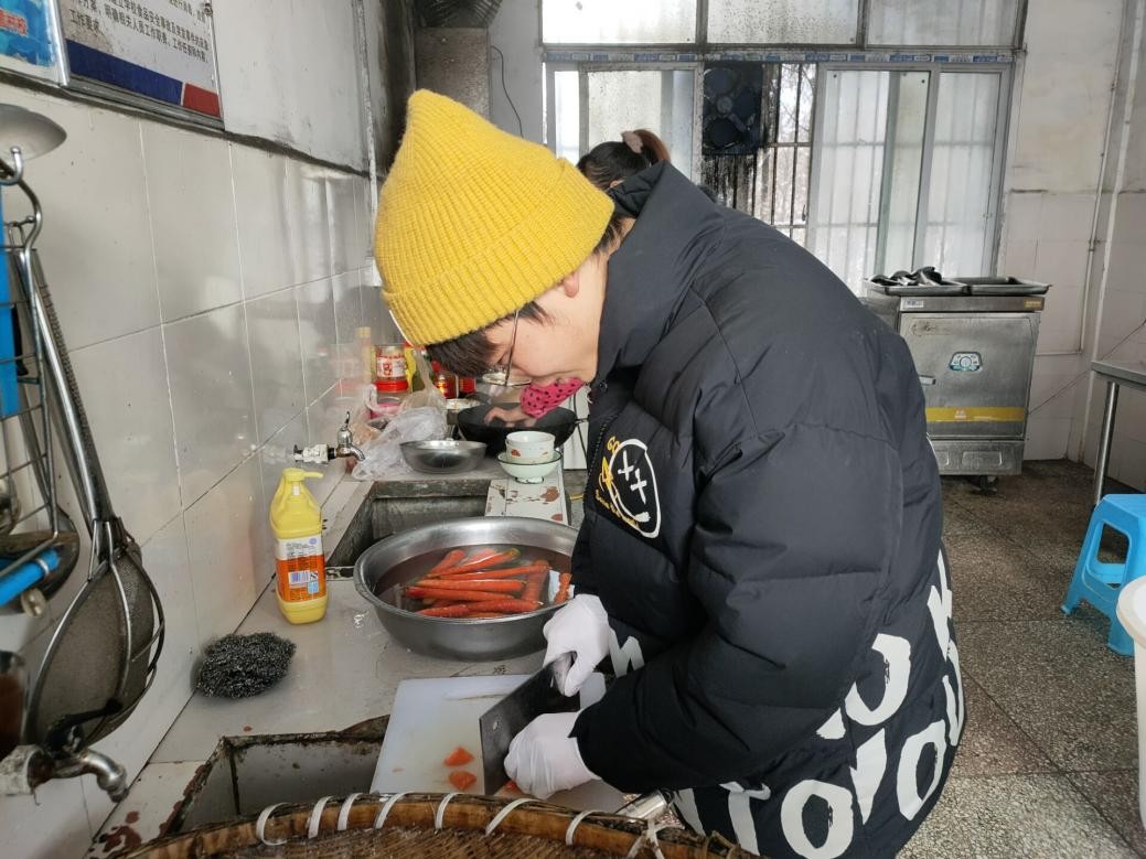 课堂结束后,队员们参观公司食堂,并走进厨间动手为孩子们制作爱心午餐,帮助孩子们打饭添菜。