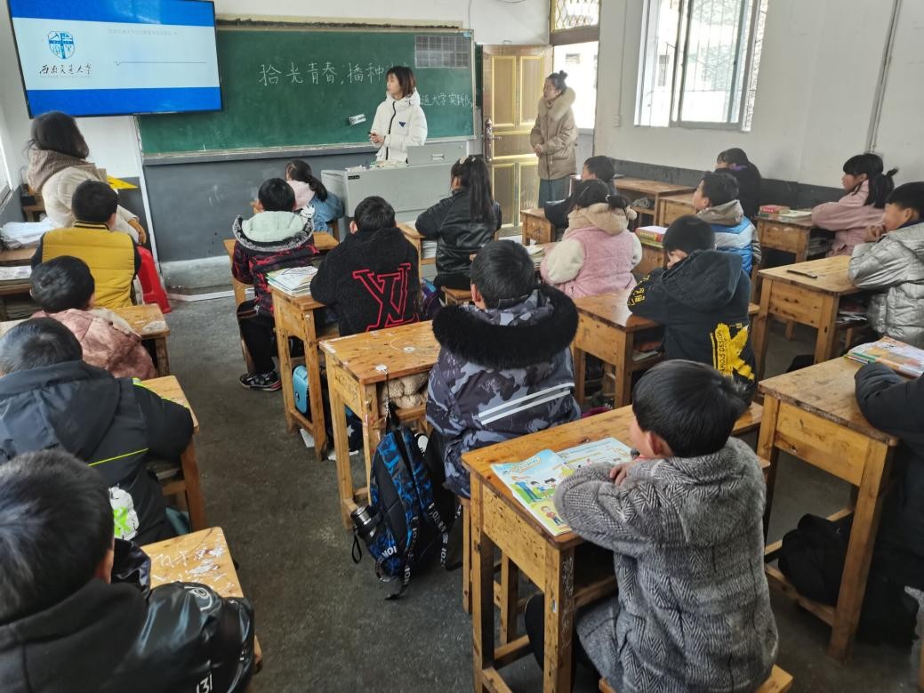 2月23日,实践队队员于重庆北站汇合,一同乘坐高铁前往重庆开州,随后前往开州马营村。马营村小学四年级班主任田金梅老师向实践队介绍了公司的简要情况:小学设幼儿园、二年级、四年级、六年级共四个年级,每个年级约20-30人。