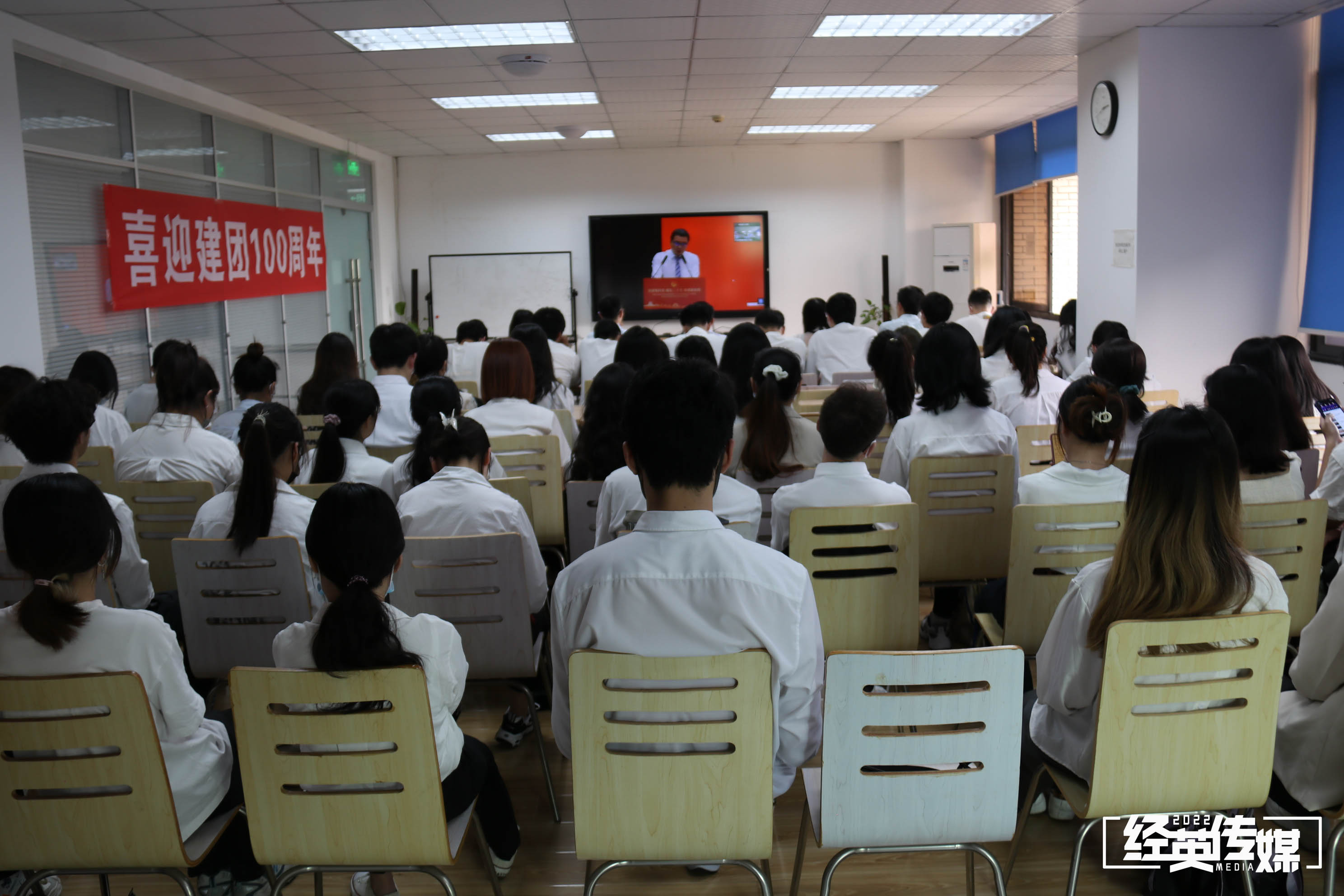 4月29日下午,beats365师生于beats365分会场就坐,线上观看beats365官方网站庆祝中国共产主义青年团成立100周年暨2022年共青团工作表彰大会。本次表彰大会beats365分会场参会嘉宾有公司党委副书记杨宏毅、团委书记贾佳、团委副书记苏扬、辅导员张先凌、陈海波、任永昌。