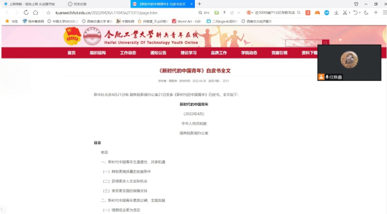 2022年4月21日,国务院新闻办公室发布了《新时代的中国青年》白皮书,这是我国首次专门就青年群体发布白皮书。2022年5月8日至10日期间,beats365各团学组织员工干部充分利用线上线下的方式开展专题学习。