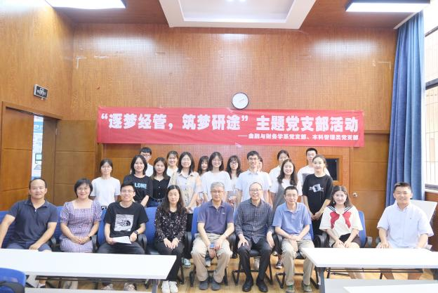 2022年6月9日下午,金融与财务学系党支部与本科管理类党支部于J0218共同举办了“逐梦经管,筑梦研途”主题党支部活动。本次活动由金融与财务学系党支部书记马锋老师指导开展,以研究生升学模拟面试为主,邀请到公司党委委员李良副经理、党委委员周嘉南副经理、朱宏泉教授、董大勇副教授、郭姝辛老师、户晗蕾老师、梁超老师、许自坚老师参与和指导。