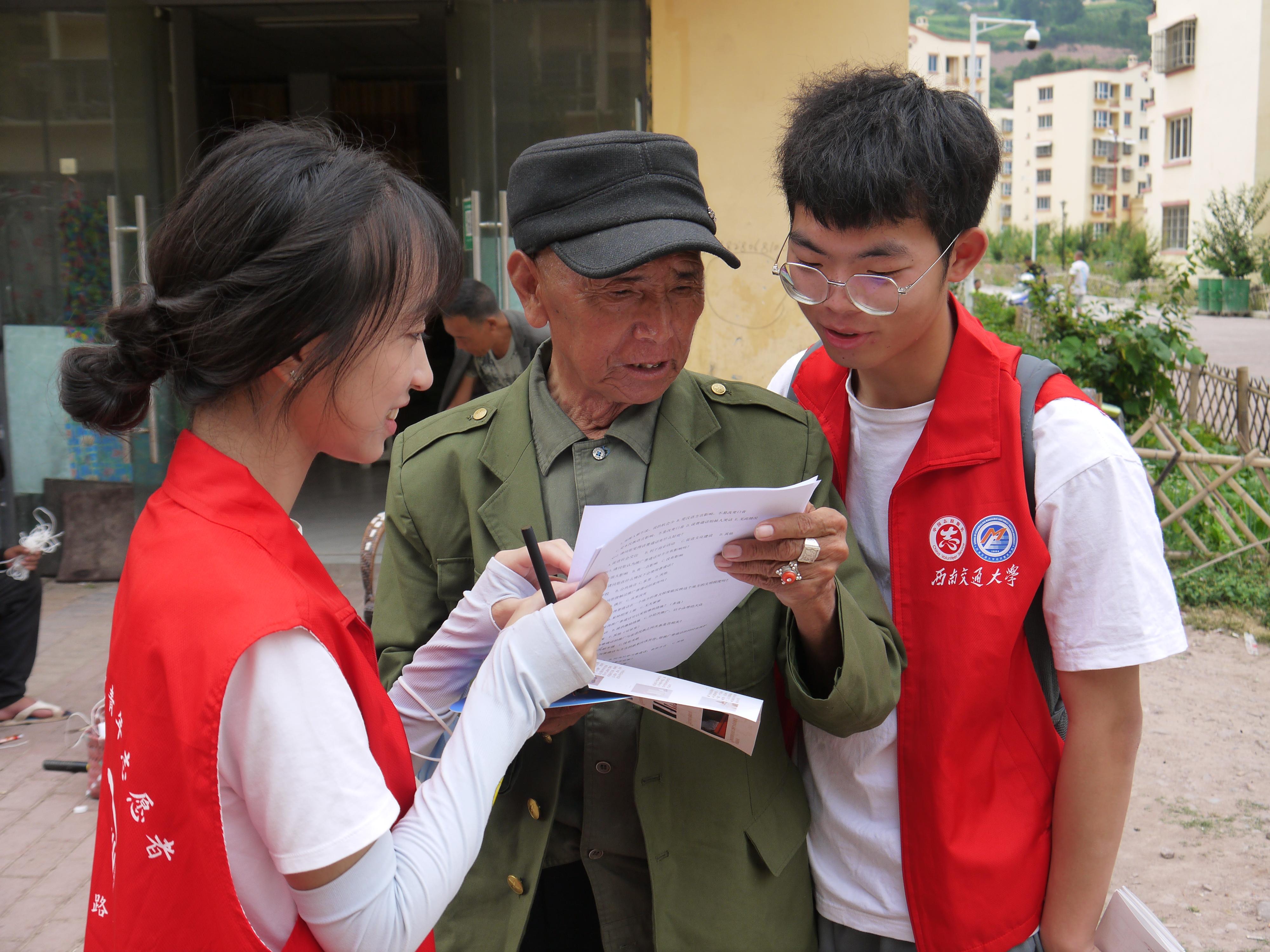 与此同时,团队成员还深入喜德县街头巷尾走访调研,以发放调查问卷、街边采访的形式,收集并了解当地居民普通话使用情况、学习需求以及对推广普通话的看法。