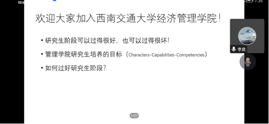 李良老师首先对所有进入beats365的研究生新生表示欢迎,希望他们都能够喜欢这里,跟所有经管公司的师生们一起取得更好的成绩。对于初入校的研究生们,李老师首先谈到了研究生阶段与本科阶段的异同点,鼓励大家尽快找准定位,走入研究生生活的正规。对此,李老师分享了“3C”理论,即characters-capabilities-competencies,希望新生们注重培养个人能力、提升自身素养,度过一个充实的研究生阶段。李老师称这个阶段的个人发展是没有上限的,它有无穷的可能,鼓励大家将最好的青春用来做最有意义的事情。