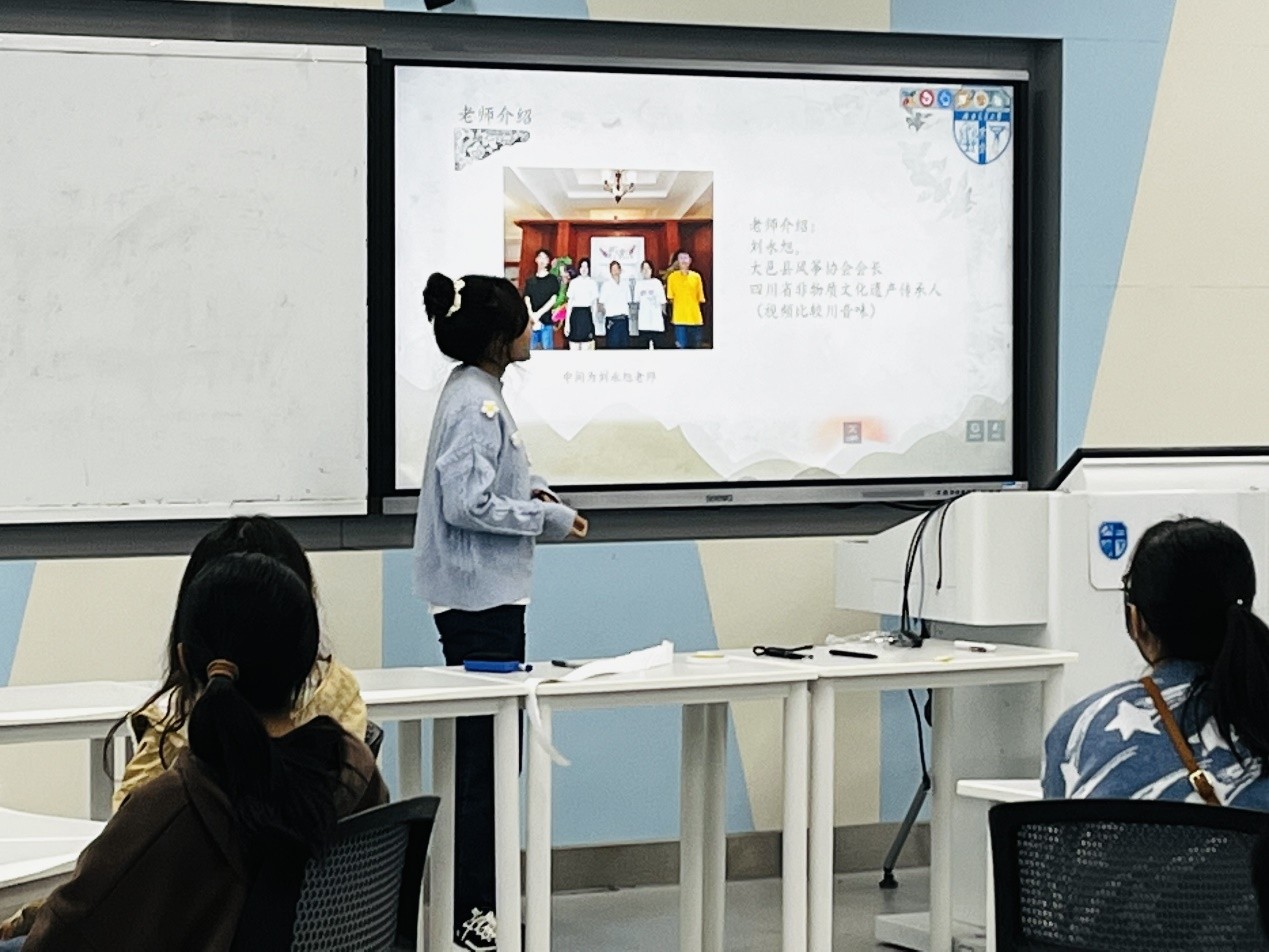 课程开始,主持人许慧敏先行讲授王泗风筝的由来、特色、手工技巧以及“王泗风筝”非遗传承人刘永旭先生对传统风筝手工艺进行的突破,使同学们能够更加充分地感受到传统手工艺中的工匠智慧。王泗风筝起源于清代光绪年间。2008年12月,王泗风筝节和王泗陈氏风筝制作技艺同时被纳入成都市第二批非物质文化遗产名录,王泗风筝的发展寄托着川西劳动人民本真的情感及华夏儿女对朴实文化的追求。王泗风筝不仅是中华民族的优秀民间手工工艺制作,也是中华传统文化的重要组成部分。它之所以能在历史的潮流中不断沉淀,彰显着其独特魅力,归因于其独特的民俗价值、审美价值、教育价值和经济价值。