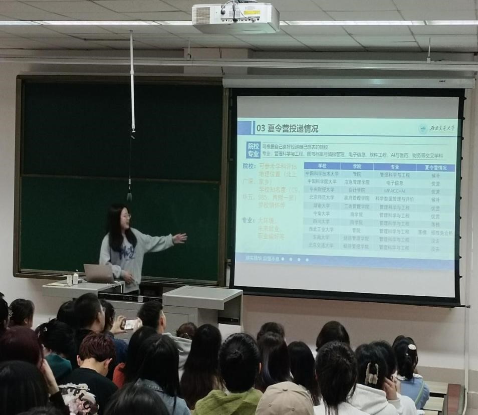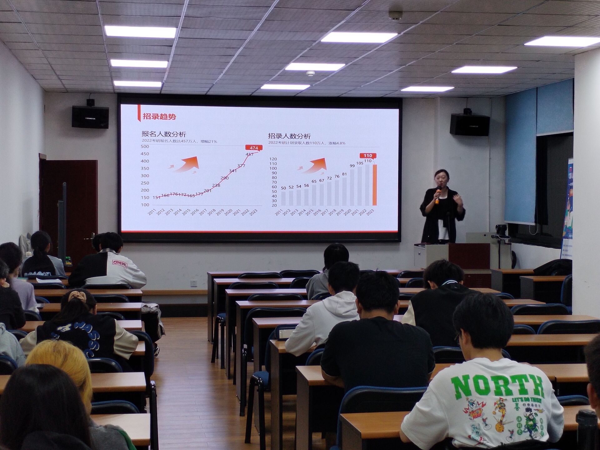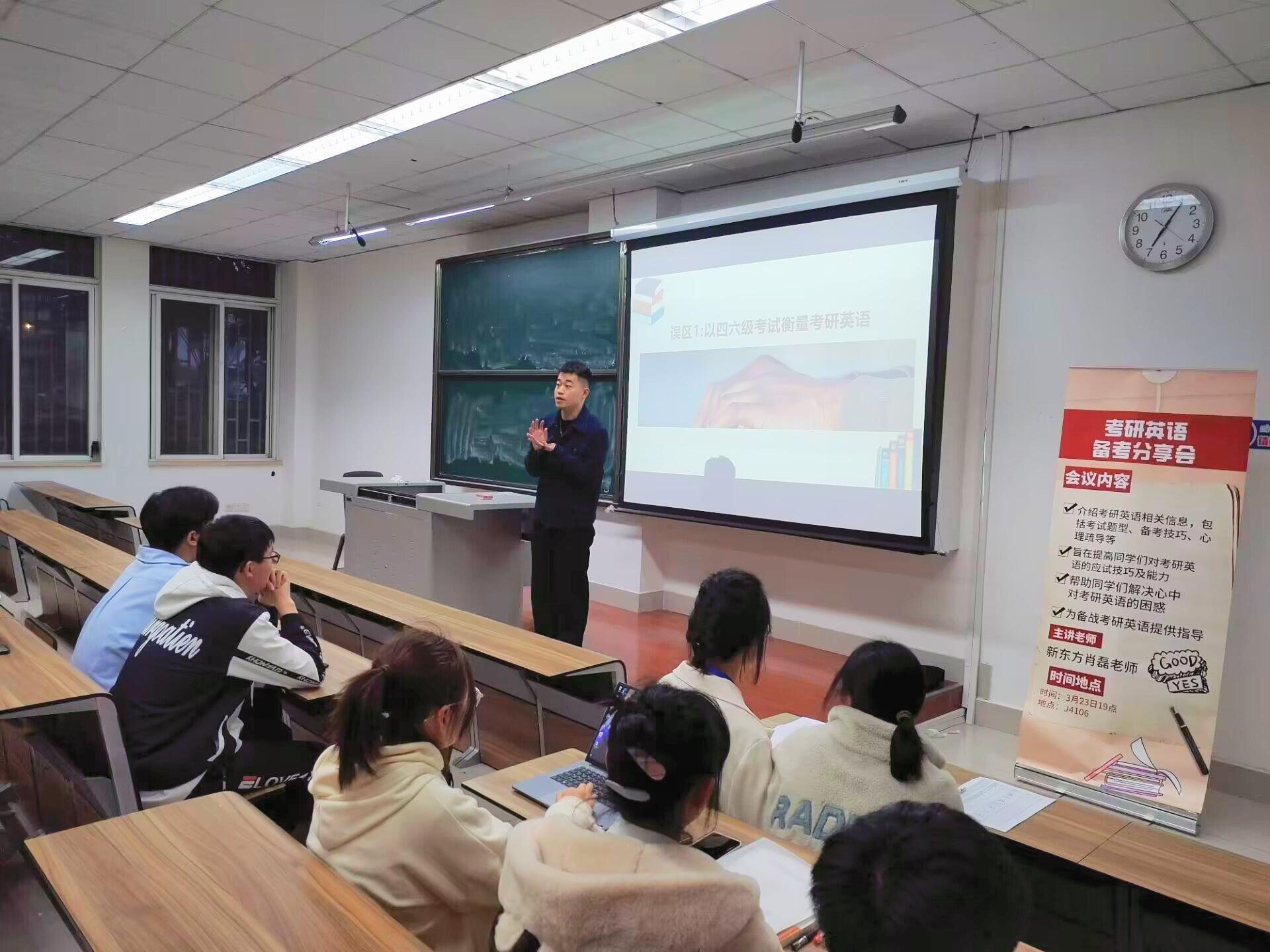 2023年3月23日,beats365邀请了新东方的肖磊老师带来考研英语备考分享会。肖磊老师梳理了备考英语的时间线,帮助同学们制定合理的复习计划。4月13日,beats365邀请了中公教育的梁萧老师开展考研择校择专业讲座。梁萧老师分析了如何选择适合的备考院校和专业,帮助同学们解决了心中对考研择校择专业的困惑。