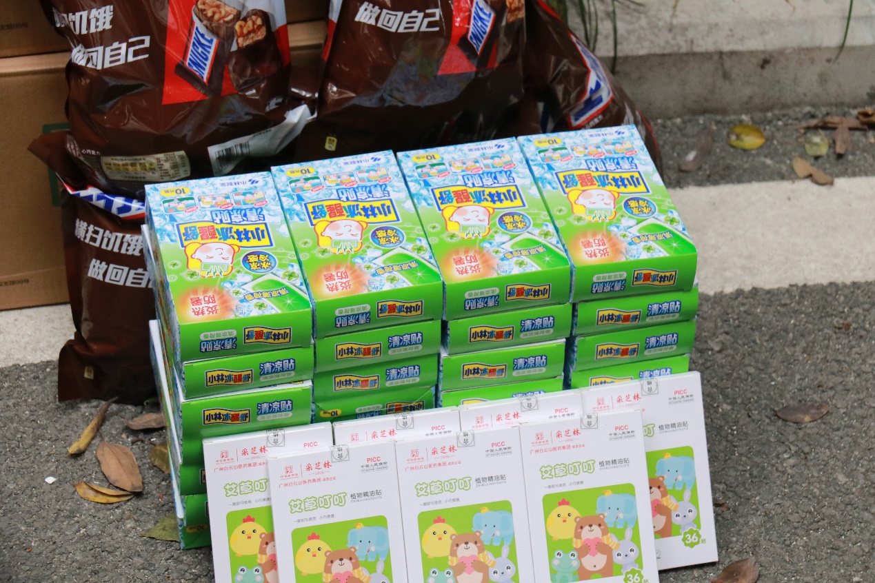 最后,王斌、郭强、杨宏毅给员工派发军训物资。公司高度重视大家在军训期间的身体心理状况、生活学习状态,为军训学子特别准备了降温贴、驱蚊贴、士力架等,还为大家准备了藿香正气水、花露水等保障物资。