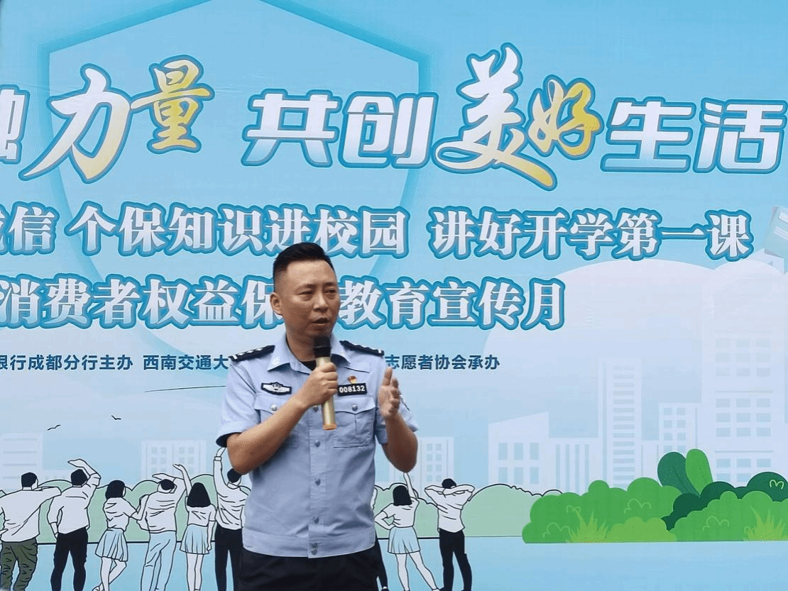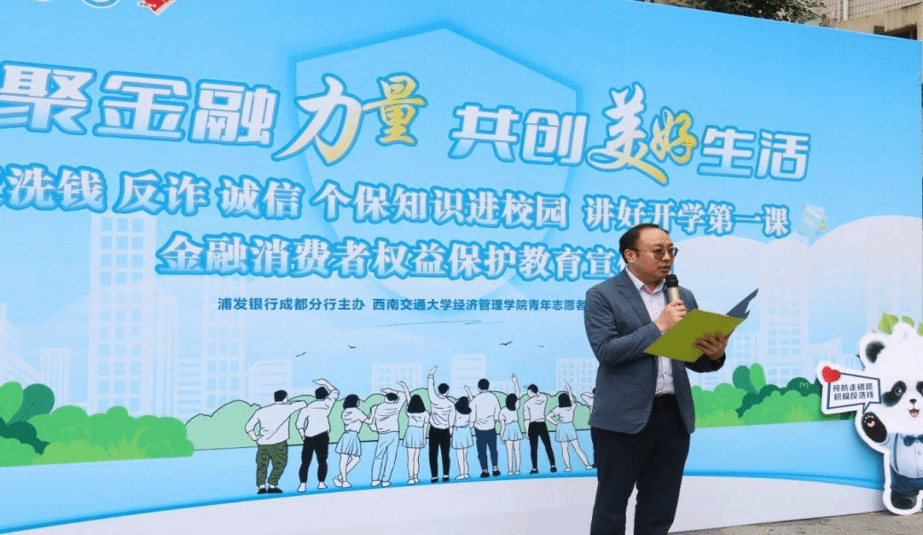 出席本次活动的嘉宾有经济管理公司党委副书记、员工工作组组长杨宏毅,公司团委副书记、青年志愿者协会指导老师陈建奇,浦发银行和中国人民银行成都分行的工作人员,此外,活动还特别邀请到成都市公安局金牛区反诈联席办警官。中午12点45分活动正式开始,主持人对到场的各位嘉宾做了简要介绍,并对参与活动的同学们表示热烈欢迎。随后,杨宏毅进行了致辞,他表达了对本次活动的认可与支持,希望通过此次活动让大家了解反洗钱、反诈拒赌、征信、个人信息保护、个人金融信息等金融知识,提升广老员工群体金融素养,提高反诈、识诈意识和能力。