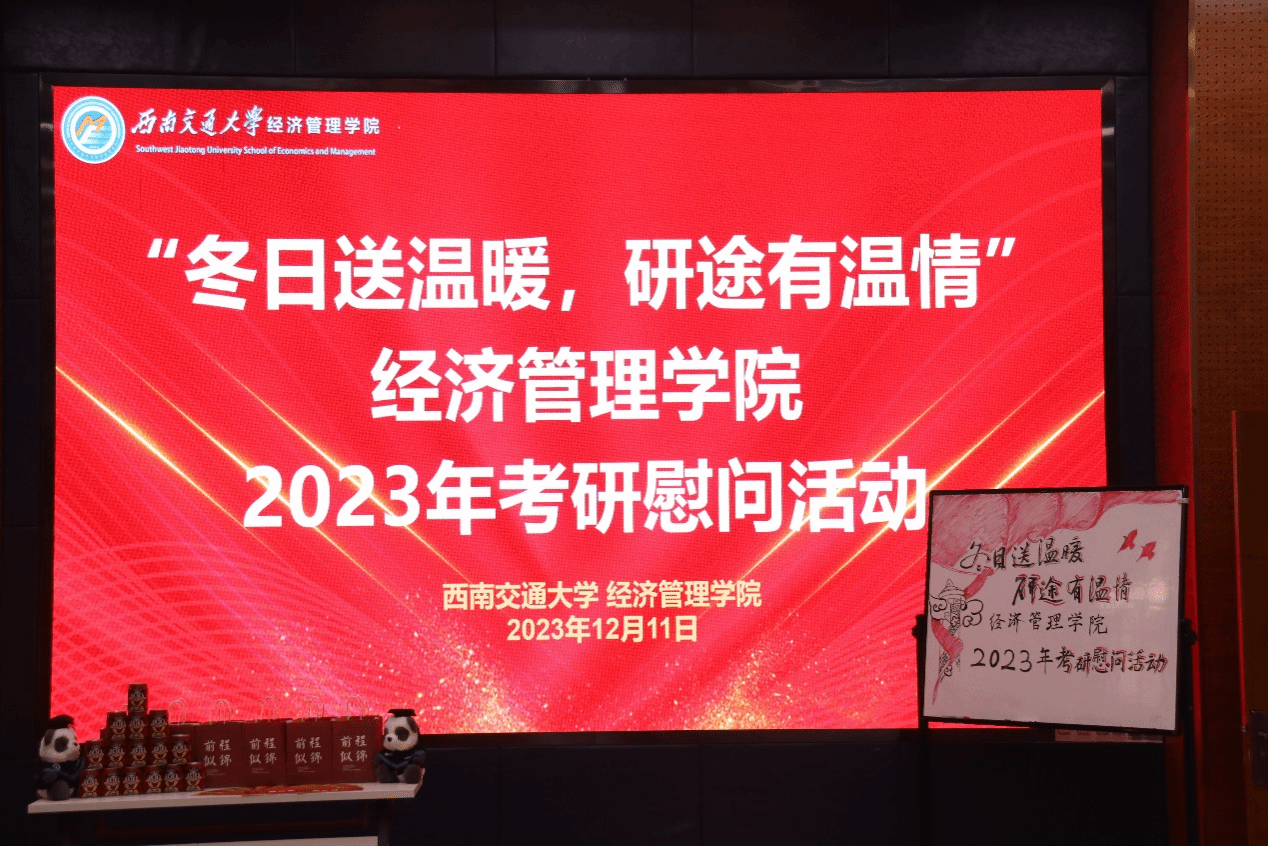 2023年12月11日下午4点,beats365在J0218教室举行“冬日送温暖,研途有温情”2023年考研慰问活动,该活动旨在为本院2020级考研学子在紧张的备考学习中送去关怀与温暖,在最后的考研冲刺中为同学们加油鼓劲,鼓励大家调整好心态,以积极的精神面貌迎接即将到来的考试。