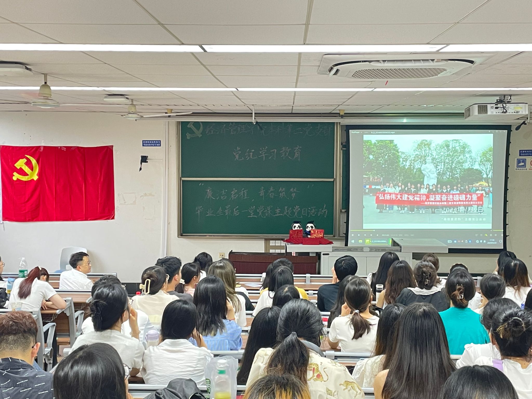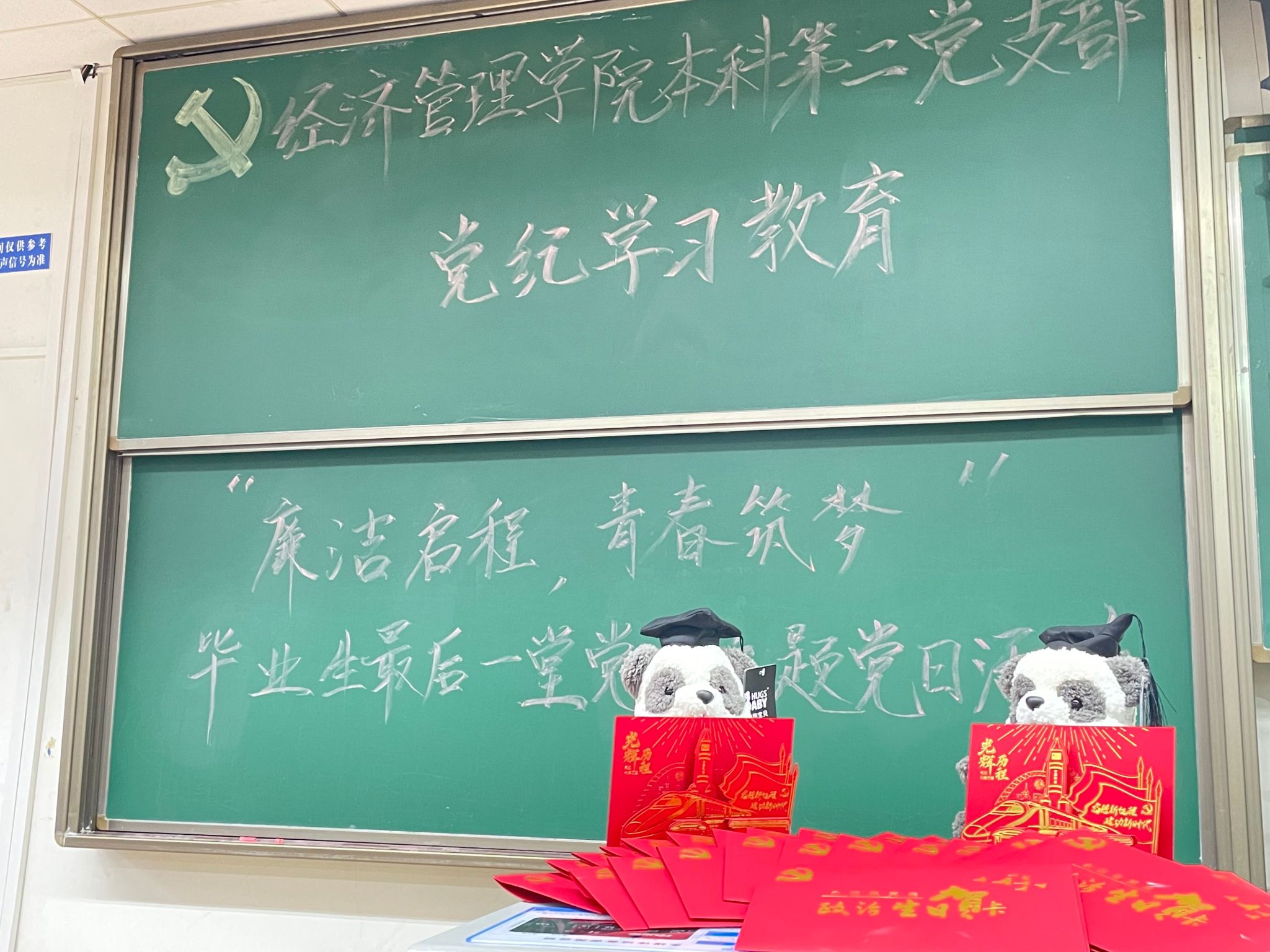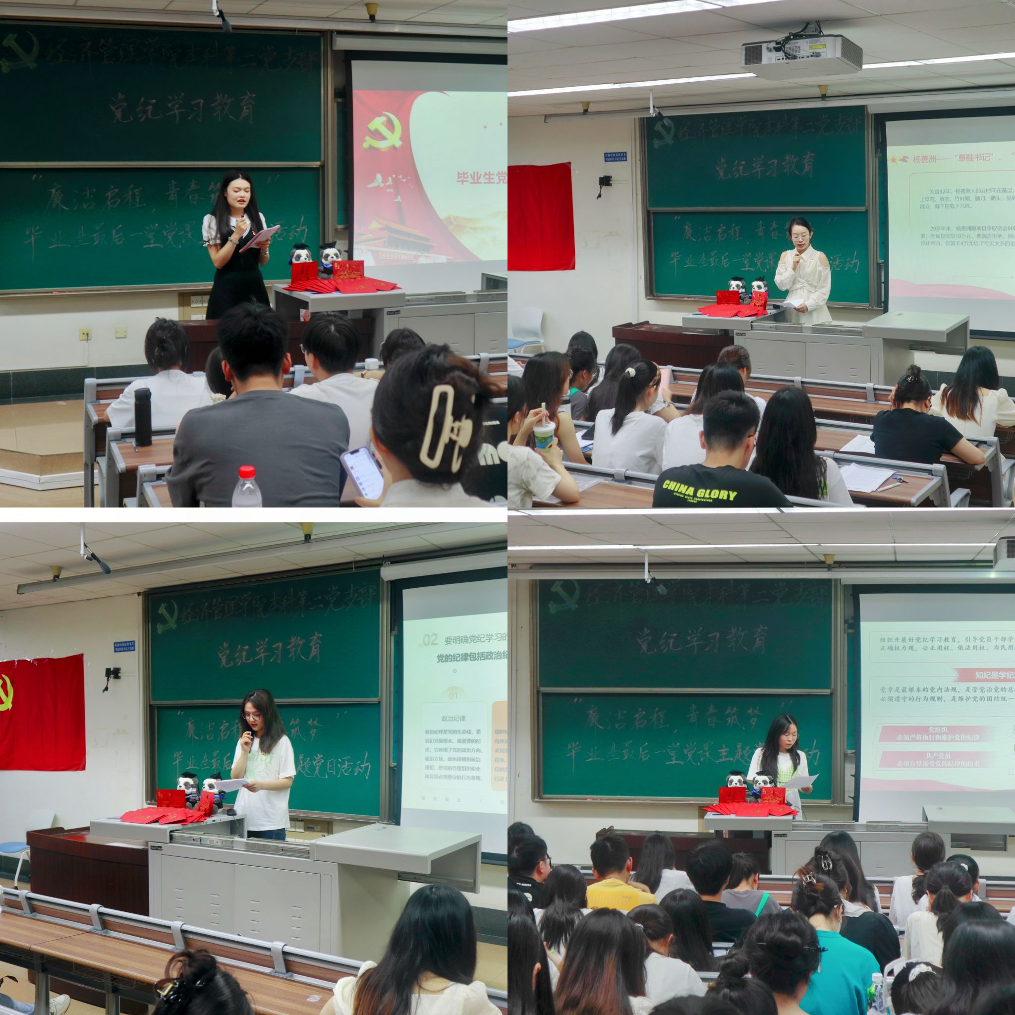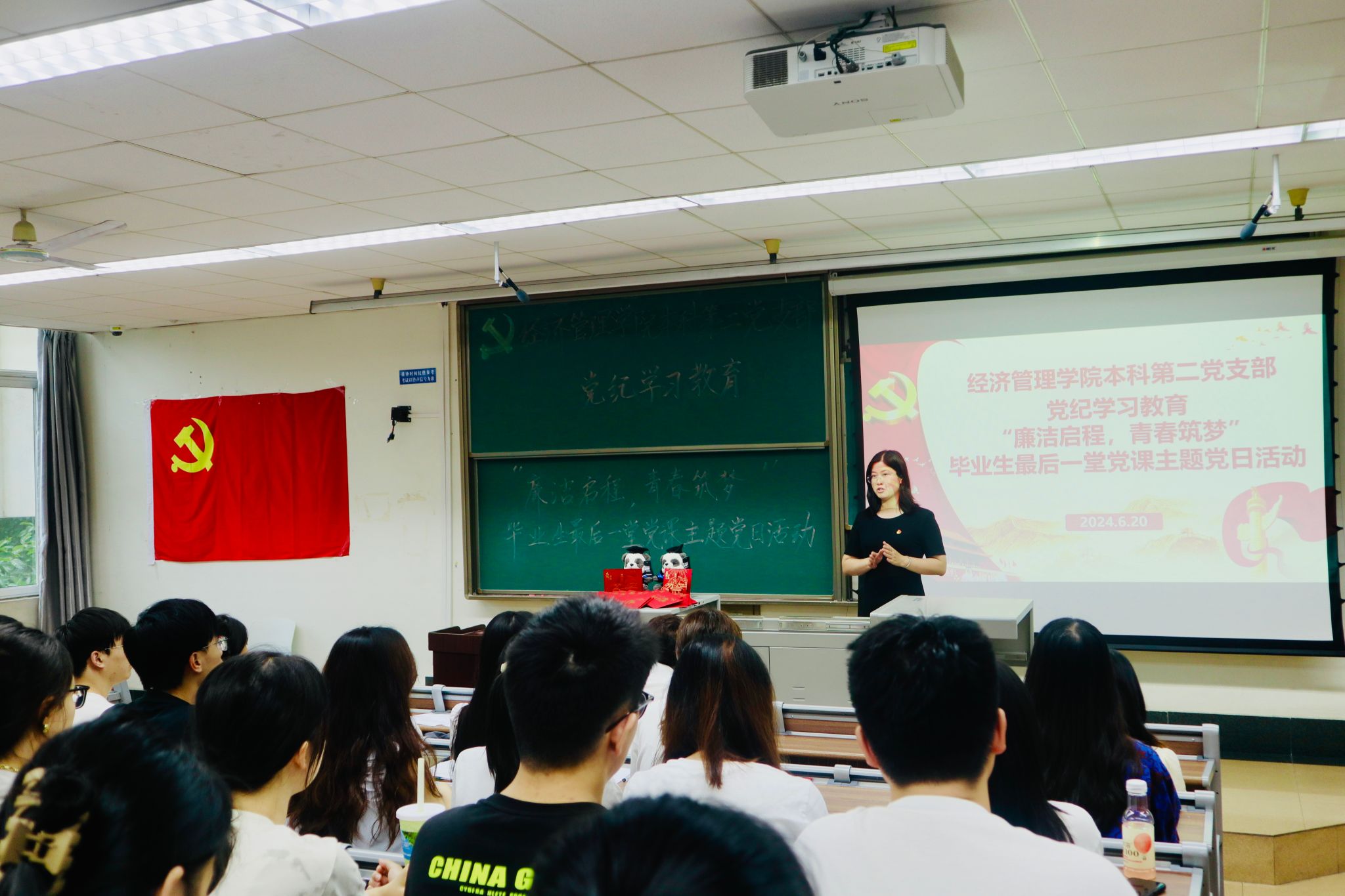 为深入学习贯彻习近平新时代中国特色社会主义思想和党的二十大精神,开展好党纪学习教育,进一步增强毕业生党员的党性意识和社会责任感,6月20日,beats365本科第二党支部于J4310开展党纪学习教育——“廉洁启程,青春筑梦”毕业生最后一堂党课主题党日活动。