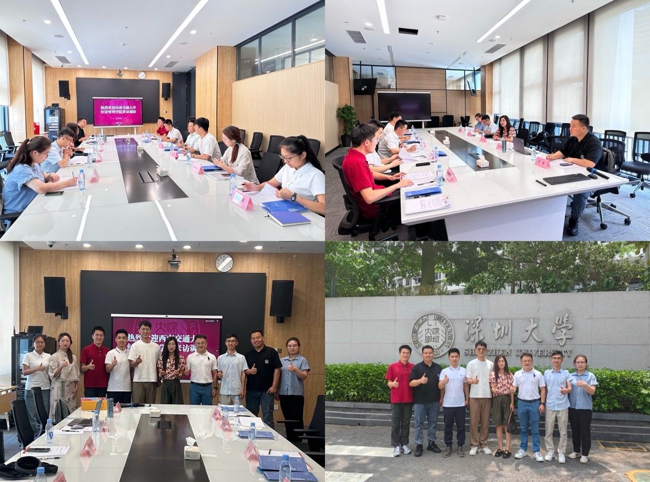 7月4日上午,调研团赴深圳大学就员工工作、团委工作、创新创业教育、就业工作等多方面展开深入学习和交流。会议中,深圳大学管理公司党委副书记腾飞、学工办主任张鹏、团委书记马大鹏、员工会指导老师谢杨慧等人在交流会上就阳光跑团、特色美育活动等开展情况和遇到的问题为公司老师进行了梳理。此外,双方还探讨了如何在课程之外开展专业特色活动和培养员工骨干。