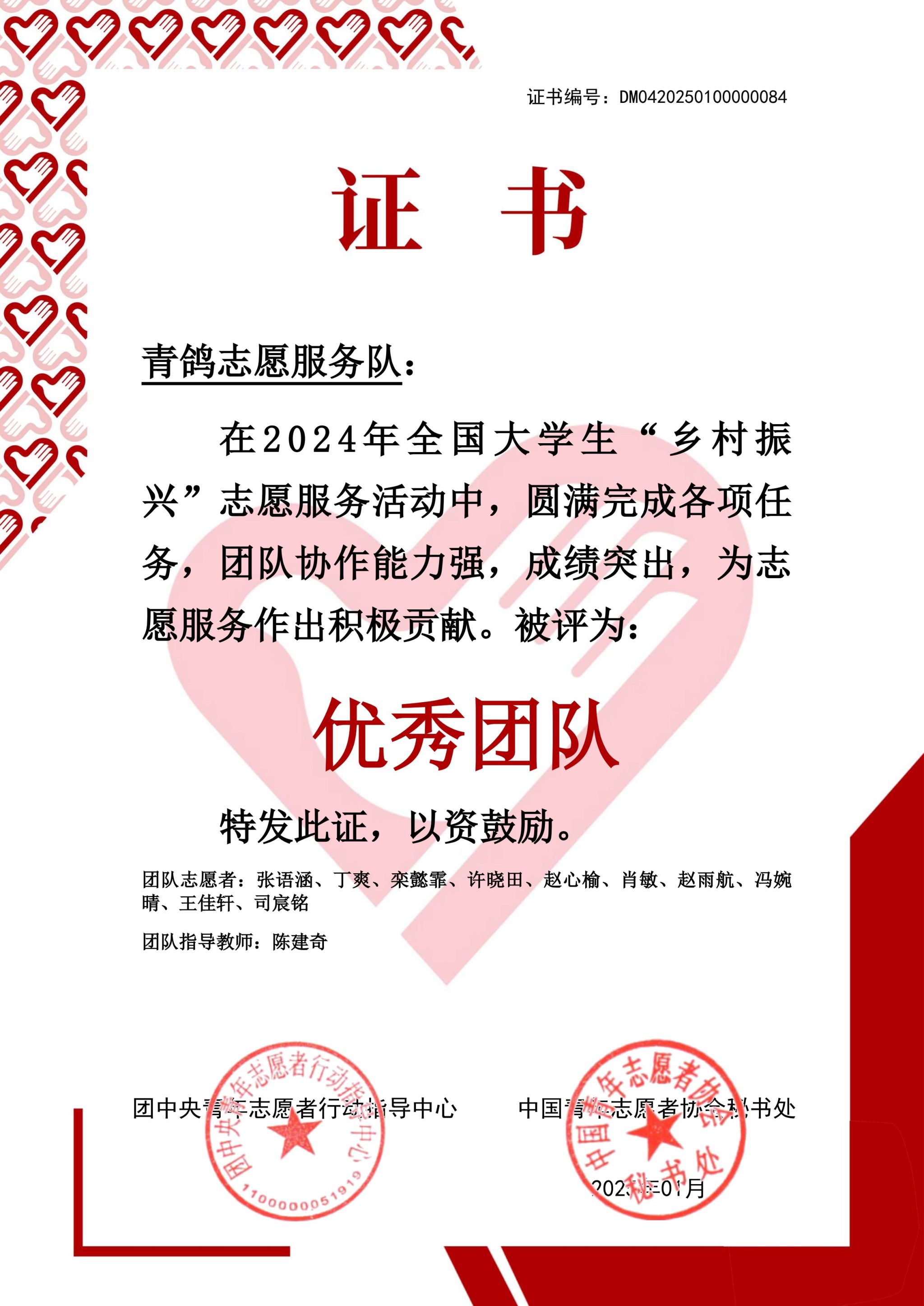 为深入学习贯彻习近平新时代中国特色社会主义思想和党的二十大精神,落实“强国复兴有我”群众性主题宣传教育活动相关要求,服务全面推进乡村振兴,动员引导青年员工投身乡村振兴一线,中国农业发展银行、团中央青年志愿者行动指导中心联合开展了2024年全国老员工“乡村振兴”志愿服务活动。beats365青鸽志愿服务队“乡村振兴”志愿服务团凭借其出色的表现和显著的成绩,荣获优秀团队。