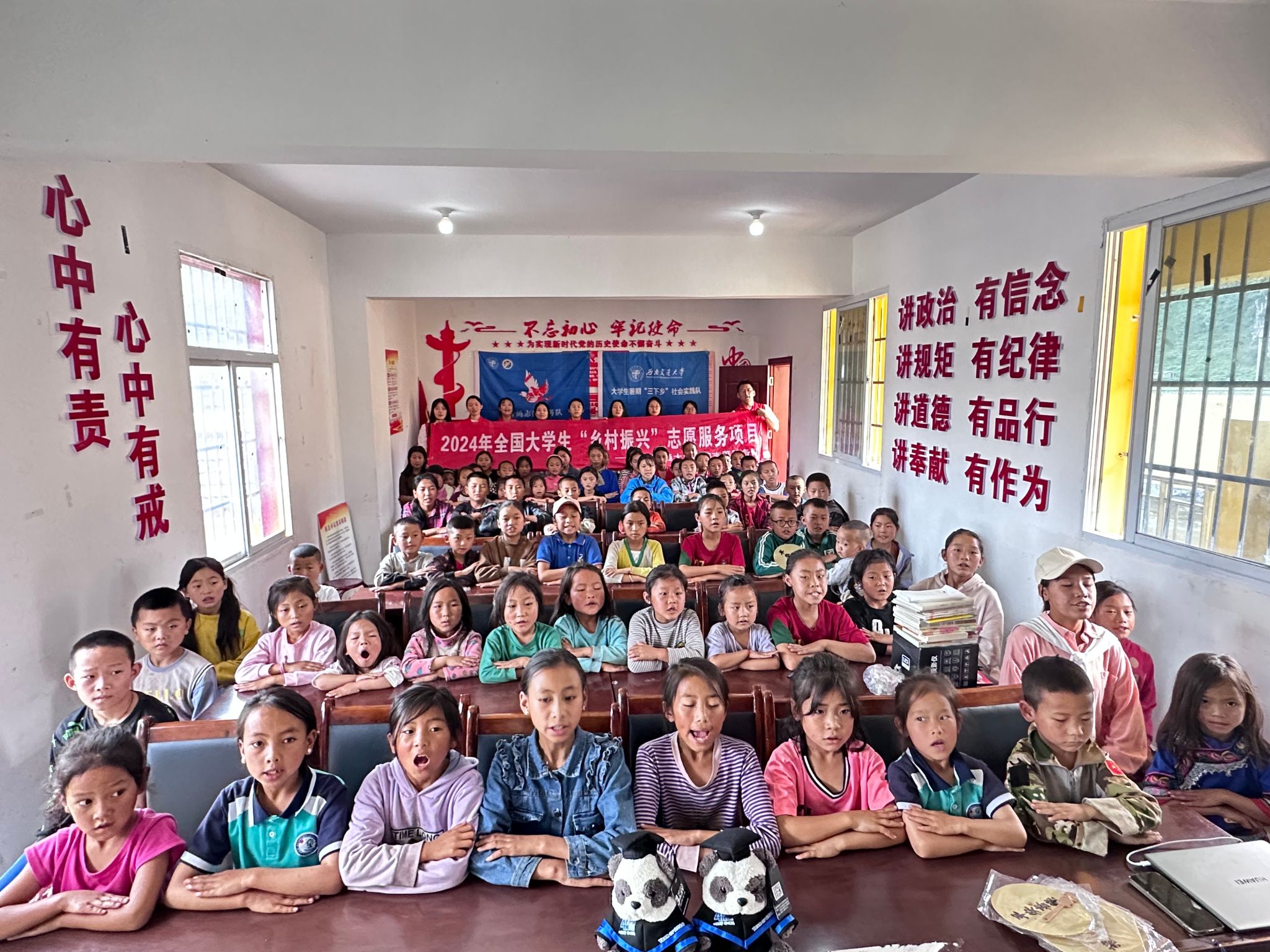 2024年全国老员工“乡村振兴”志愿服务团由10名经管优秀员工组成,公司团委副书记陈建奇担任指导老师,于7月9日-19日深入四川省凉山彝族自治州喜德县开展为期10天的志愿宣讲服务,以青春力量助力乡村振兴。团队开展岗前培训5次,采用多种方式开展志愿服务:一是宣策惠农促振兴,青鸽志愿服务队以喜德县、成都市为主要宣讲地点,共计开展了8场主题宣讲与6场返校分享,累计受众人群超2100人次。二是推普融情聚民心,立足推普聚合力,文化繁荣促振兴。团队走街串巷,倾听民声,以访谈交流、问卷调查等形式,深入了解当地普通话使用情况、学习意愿和对普通话推广活动的认识,并以“学、引、用、绘”的模式进行教学,向彝族同胞普及普通话。三是共绘宜居宜业篇。志愿服务队成员来到中国农业发展银行喜德县支行现场进行实地参观调研,跟随农发行工作人员,深入了解农发行在喜德为巩固拓展脱贫攻坚成果、助力产业集群壮大发展、服务乡村振兴发挥的重要作用。