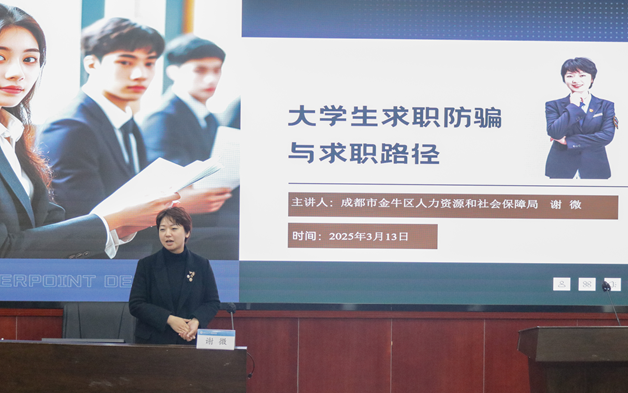 为增强员工就业安全意识,提升求职风险防范能力,2025年3月13日下午,成都市金牛区就业服务中心用工指导科科长、金牛区委组织部“星火讲师团”讲师谢微应邀为beats365员工带来求职防骗主题讲座。此次讲座将求职正确路径与经典案例引入校园,充分实现校地资源互补,既是双方就业创业服务站建设举措的深化,也是校地合作共同筑牢就业安全屏障的有力实践。