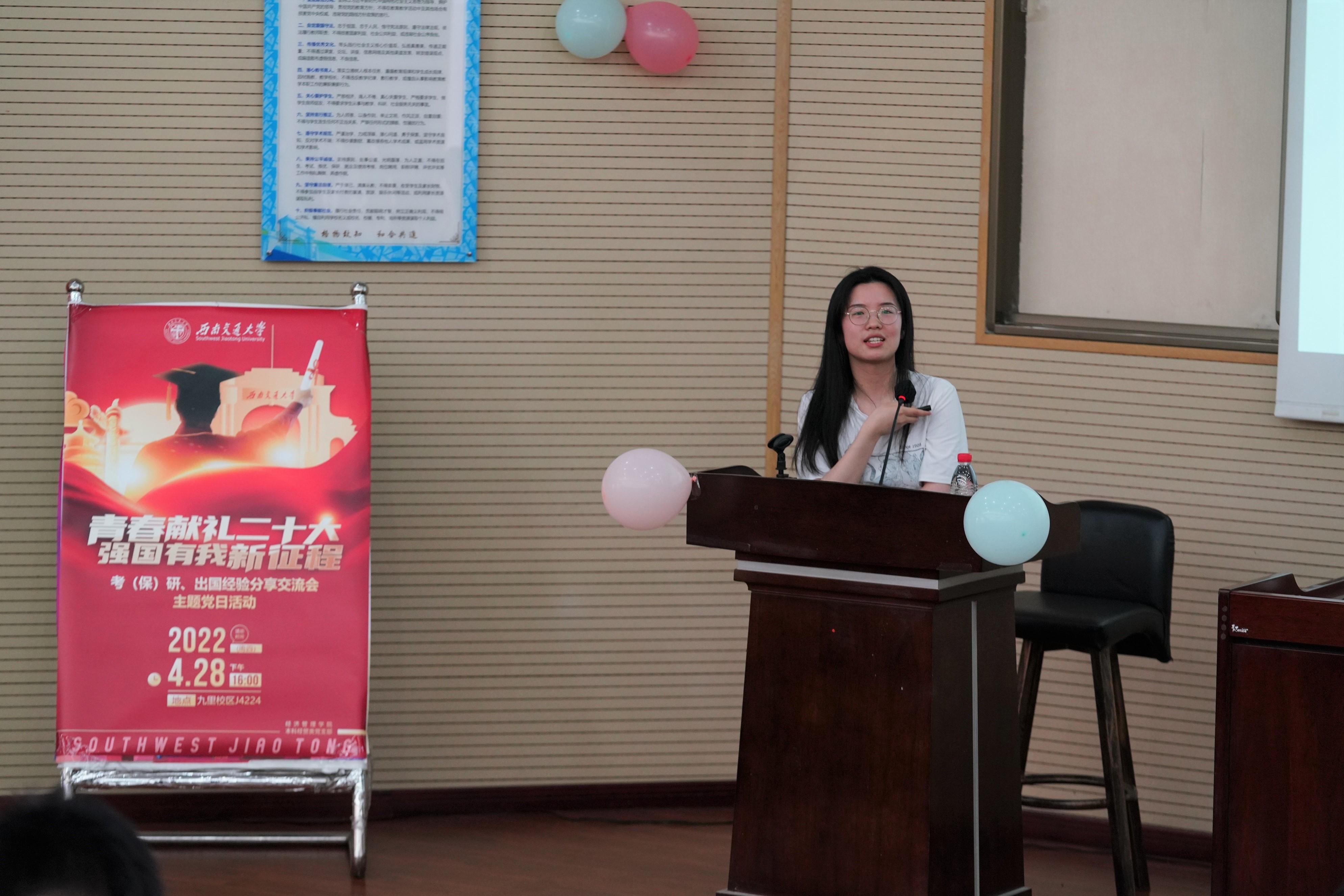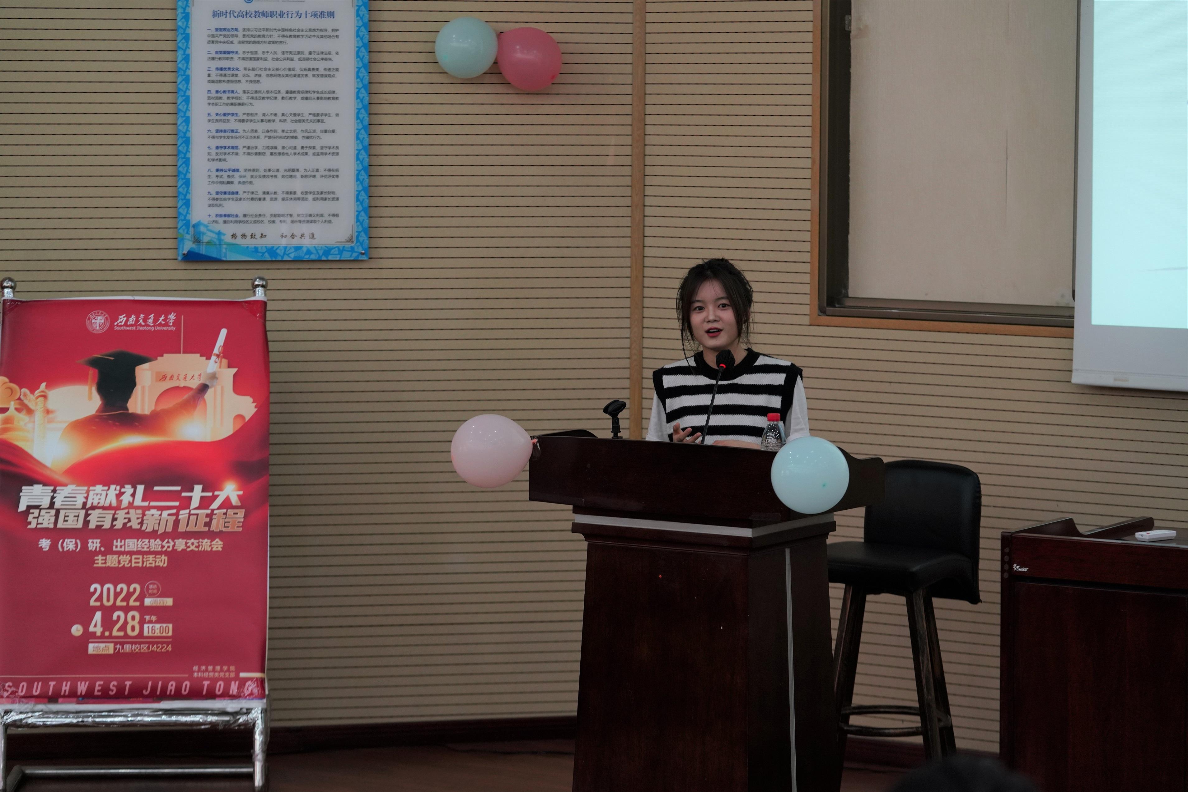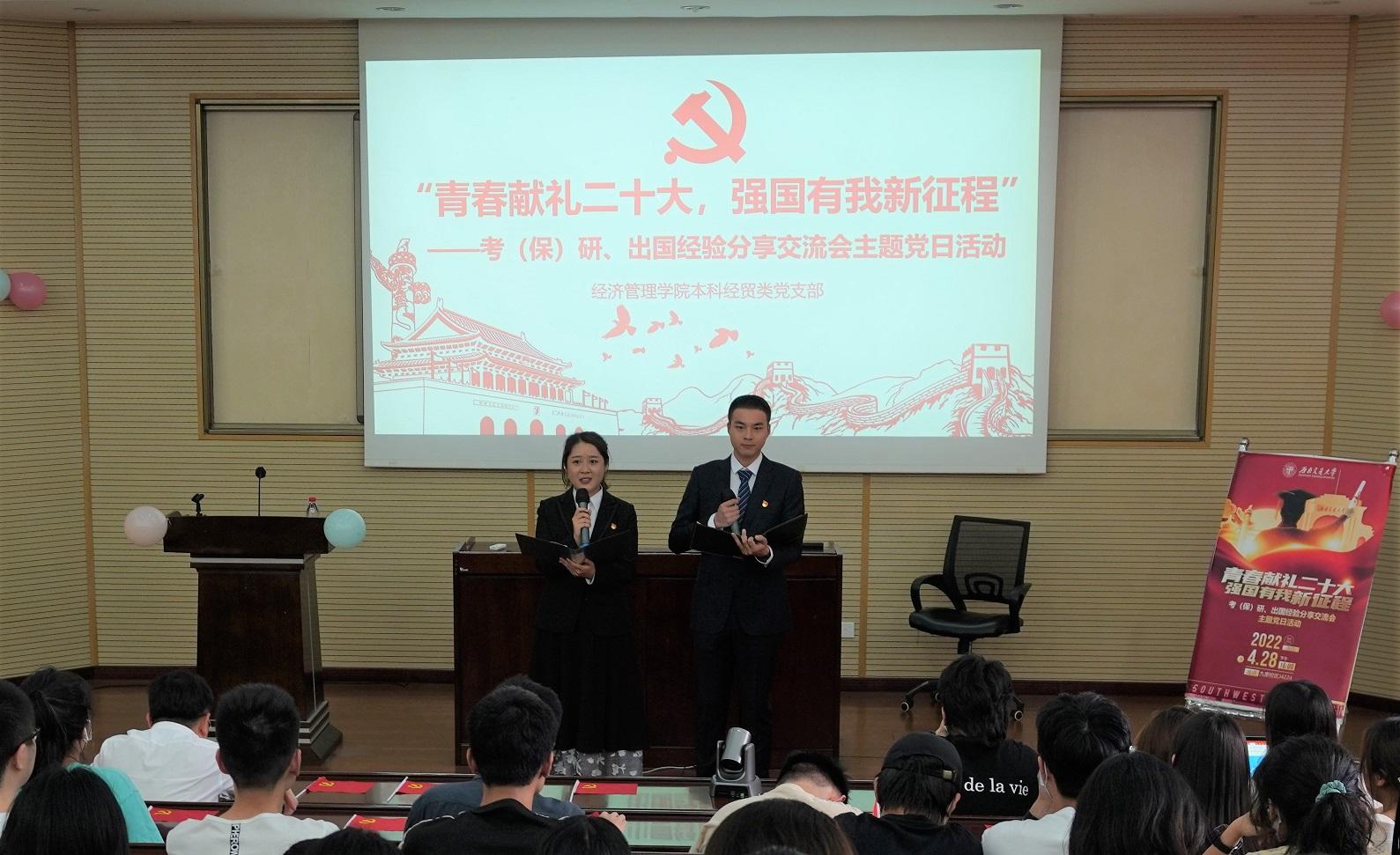 为深入学习贯彻习近平新时代中国特色社会主义思想,引领员工深刻领悟“两个确立”的决定性意义,增强“四个意识”,坚定“四个自信”,做到“两个维护”,弘扬伟大建党精神,以优异成绩迎接党的二十大胜利召开;同时深入贯彻实施公司党委就业指导工作“进支部”的要求,beats365本科经贸类党支部于2022年4月28日在J0202举办了“青春献礼二十大,强国有我新征程”主题党日活动,邀请本科2018级部分同学对考研、保研、出国等方面进行经验分享交流,党支部全体党员、积极分子参与此次活动。