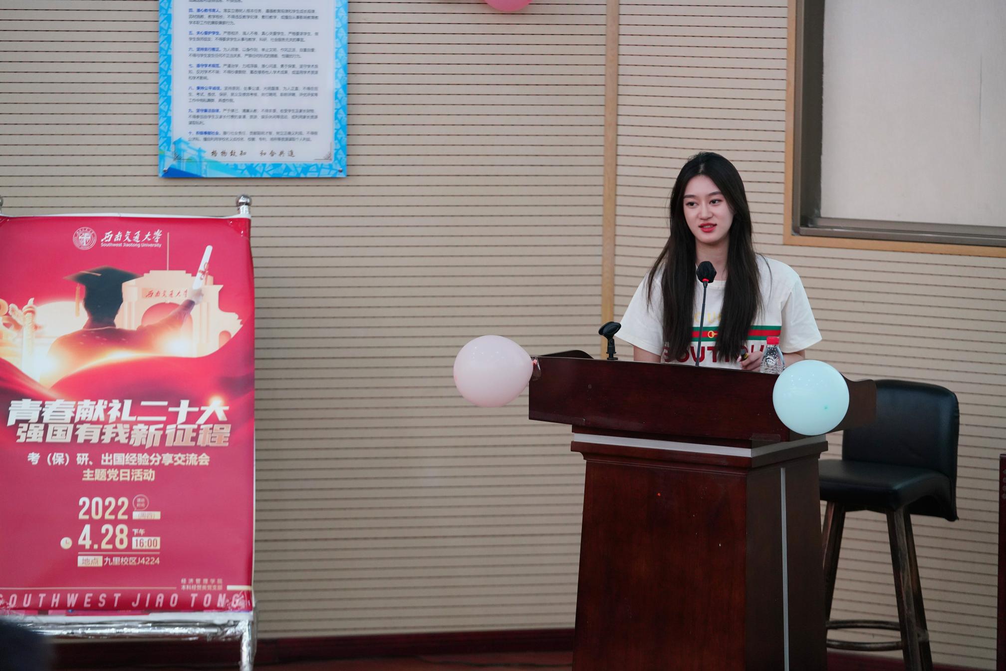 通过此次考(保)研、出国经验分享交流会主题党日活动,同学们对考研、保研以及出国留学都有了更加清晰的认识,同时也更加明确了自己未来的发展方向。习近平总书记曾在给新时代青年的回信中写道:“希望你们珍惜韶华、奋发有为。勇做走在时代前面的奋进者、开拓者、奉献者,努力使自己成为祖国建设的有用之才、栋梁之材,为实现中国梦奉献智慧和力量。”希望同学们都能够不断拼搏、奋勇前进,“相期同造最高峰”,相信成功将会属于每一位同学。