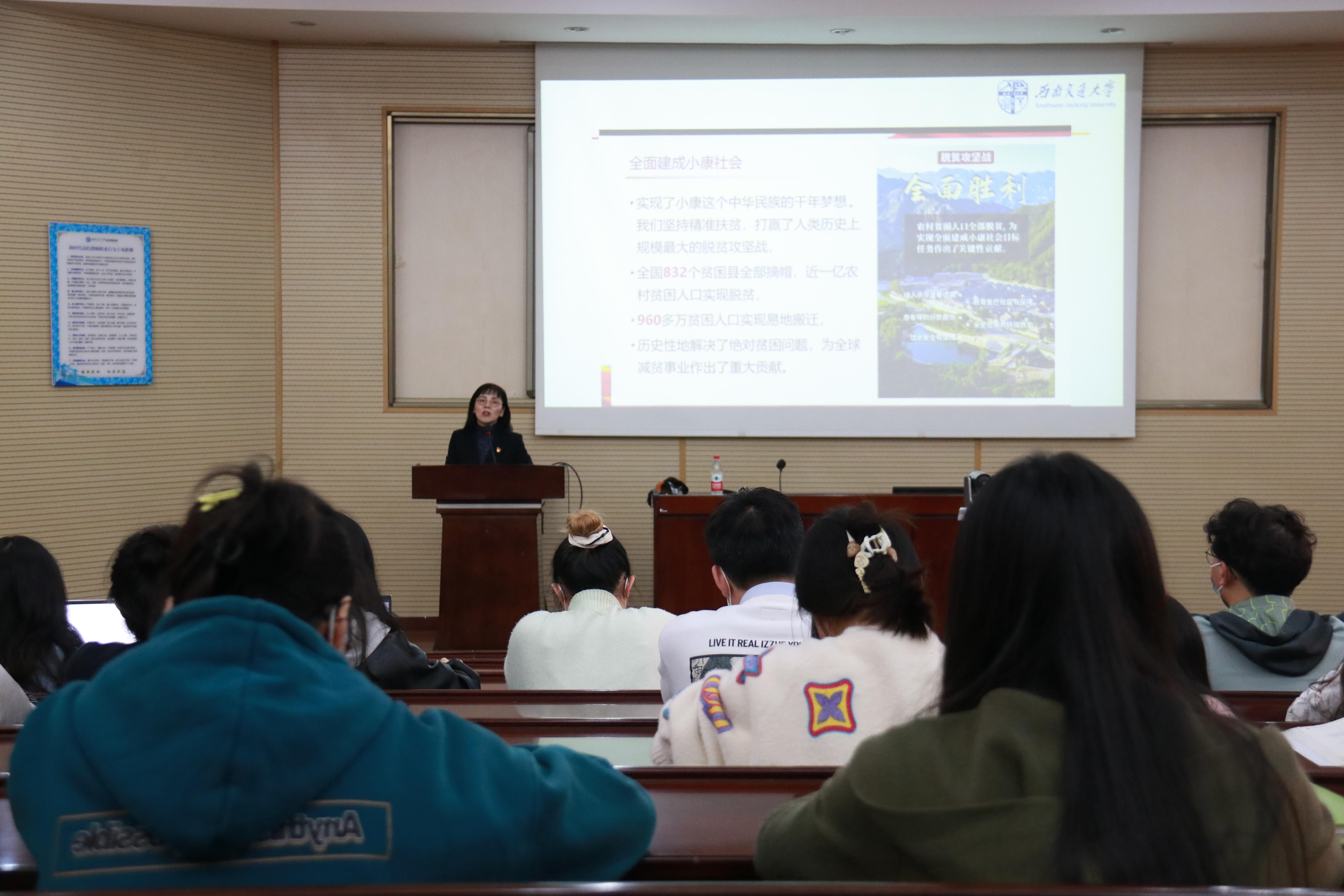 随后,何薇教授通过展示新时代十年伟大变革取得的重大成就,深入学习领会了过去五年工作和新时代十年伟大变革的重大意义,并就深入学习领会习近平新时代中国特色社会主义思想的世界观和方法论,强调了习近平新时代中国特色社会主义思想实现了马克思主义中国化时代化新的飞跃,对贯穿其中的“六个必须坚持”进行了解读,指出当代中国共产党人应坚持好、运用好习近平新时代中国特色社会主义思想的立场观点方法。