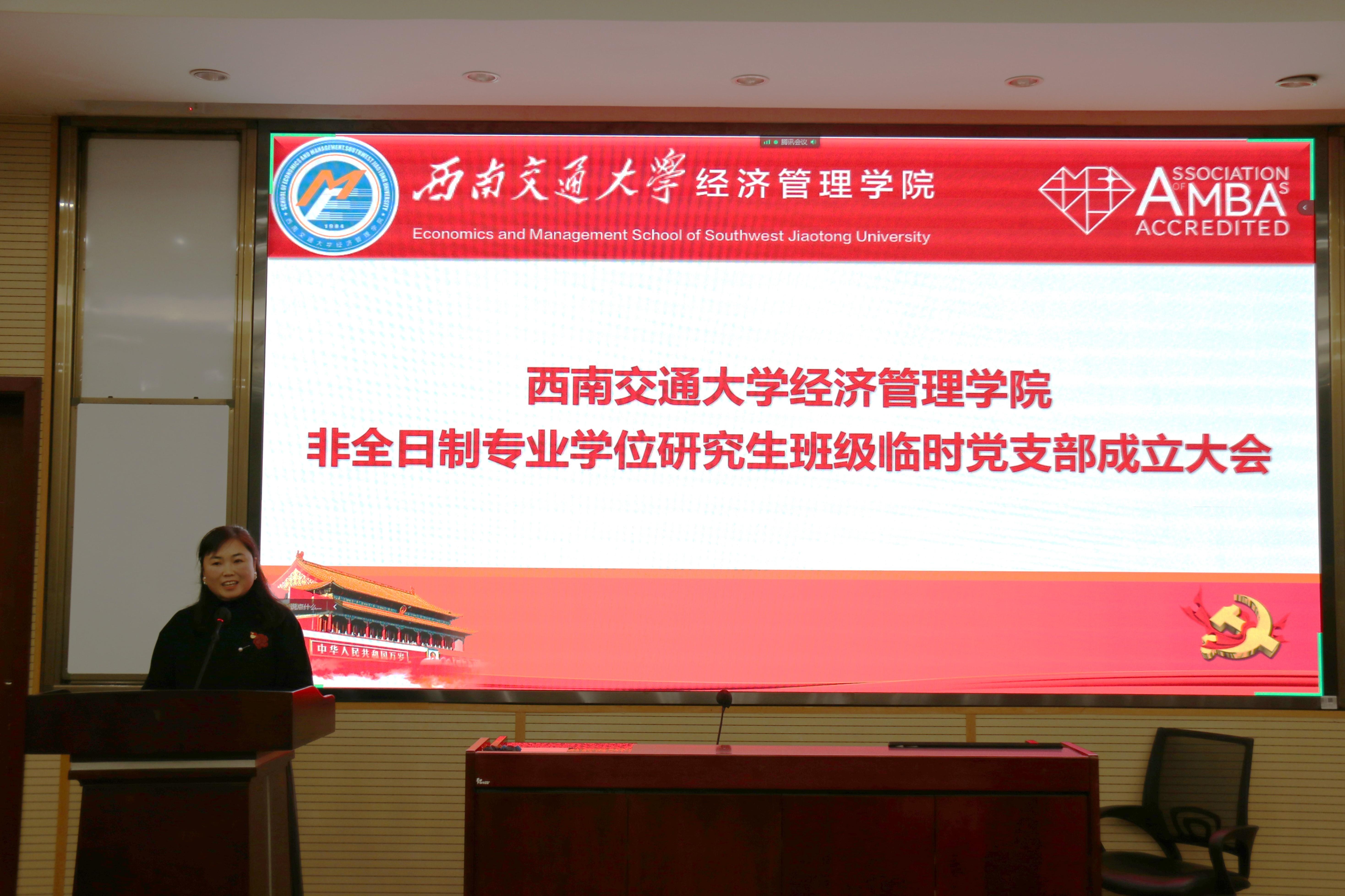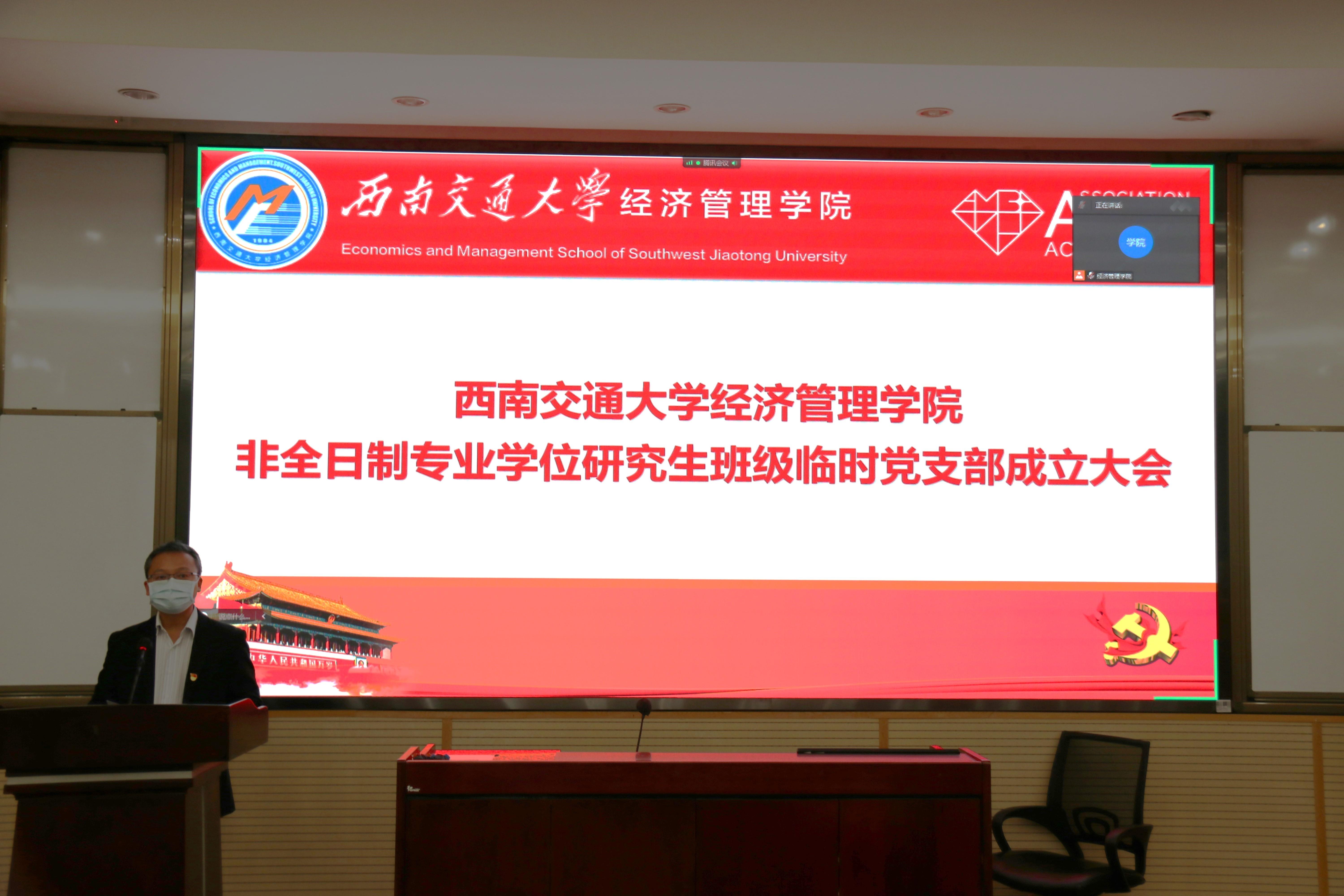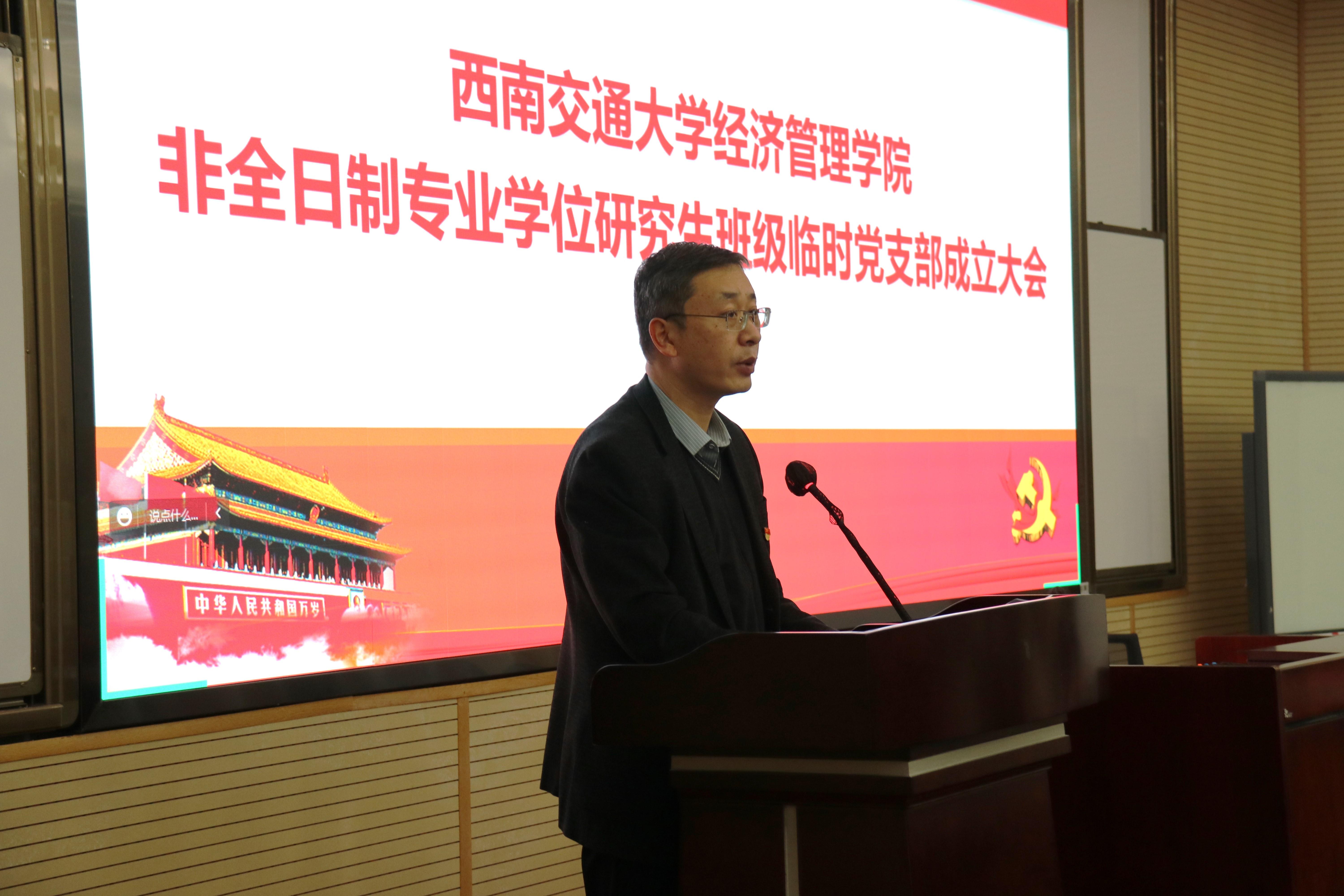 党委书记王斌代表公司党委宣布了首批17个非全日制专业学位研究生班级临时党支部的设置名单,介绍了临时党支部的使命和要求,并强调,各临时党支部,尤其是党支部书记、委员,要严格要求,恪尽职守,履职尽责,发挥好党支部的组织作用和政治保障功能,一是要组织和带领所在班级非全日制专业学位研究生同学深入学习党的理论、方针、政策,深入学习领会和贯彻落实党的二十大精神;二是要为非全日制专业学位研究生同学搭建更多互动平台,组织各种卓有成效的党建活动,将同学们的课堂学习和课后交流实践以及大家的成长发展紧密结合起来;三是锻造公司非全日制专业学位项目办学特色,力争打造更有站位、更高价值的,具有西南交大经管公司特色的品牌。各党支部书记、委员和党员同志,要始终牢记自己的中国共产党党员身份,当先锋、做表率,要在各方面为广大非全日制专业学位研究生同学起到示范引领,引导非全日制专业学位研究生同学们坚定理想信念,端正学习态度,恪守学术道德,不断成长进步,为国家和经济社会的发展做出贡献。