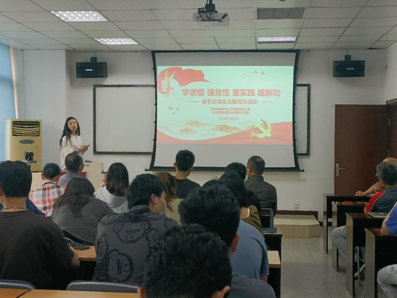 为深入开展学习贯彻习近平新时代中国特色社会主义思想主题教育,促进师生党员将理论学习和生活实际相联系,推进师生党员深入联系交流,根据《beats365党委关于开展“学思想、强党性、重实践、建新功”读书交流会主题党日的通知》要求,2023年5月25日下午,beats365工程管理系党支部和beats365本科第四党支部在0317教室联合开展了“学思想、强党性、重实践、建新功”读书交流会主题党日活动,会议由本科第四党支部书记张先凌主持,两支部全体师生党员参加。