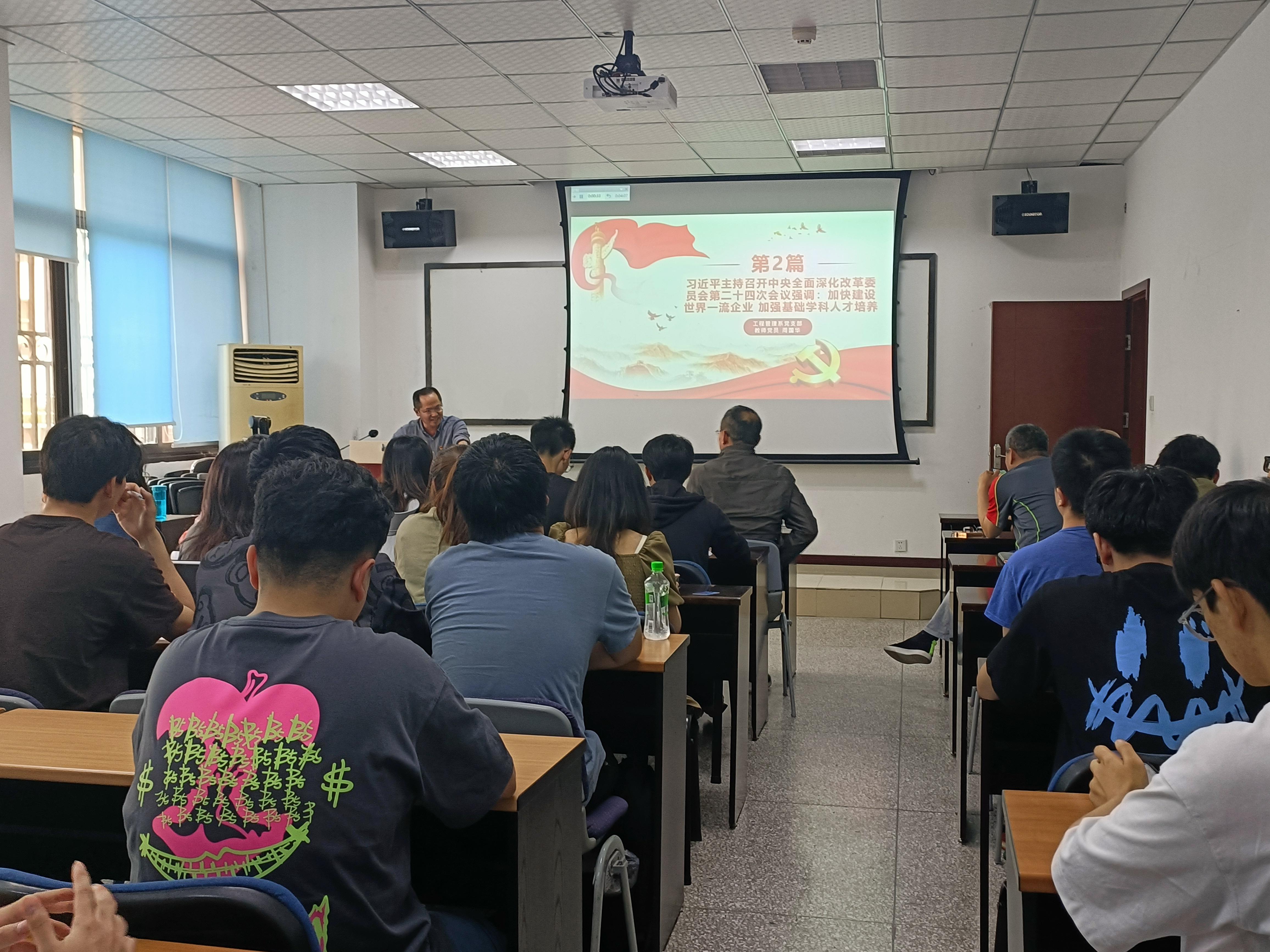 本科第四党支部书记张先凌、青年委员鄢敏辉、本科生党员崔鹏硕分别对《习近平新时代中国特色社会主义思想学习纲要》(节选)、《习近平总书记在全国高校思想政治工作会议上的讲话》、《习近平总书记关于教育的重要论述》进行领学述学,鼓励青年同志树牢共产主义远大理想和中国特色社会主义共同理想,做有情怀、有理想、有担当的青年,切勿“吃祖宗饭,砸子孙碗”,努力成为德智体美劳全面发展的社会主义建设者和接班人。